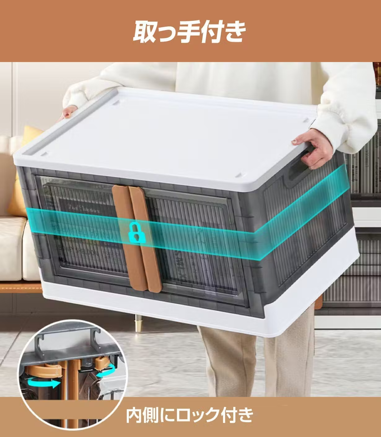 収納ケースを移動する際に、あっ!ドサッと中身が・・・このような経験少なくないですよね。ロックがかかるので安心です。