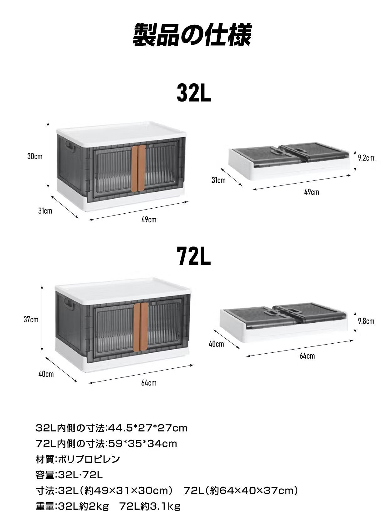 ご覧ください! この【折り畳みコンテナボックス】は 両開きの扉で四方は半透明なので中身が分かりやすく、フタ付きで積み重ねが出来ます。折りたたみ式なので使わないときは少しのスペースに収納出来ます。底に車輪が付けれますので移動も簡単!