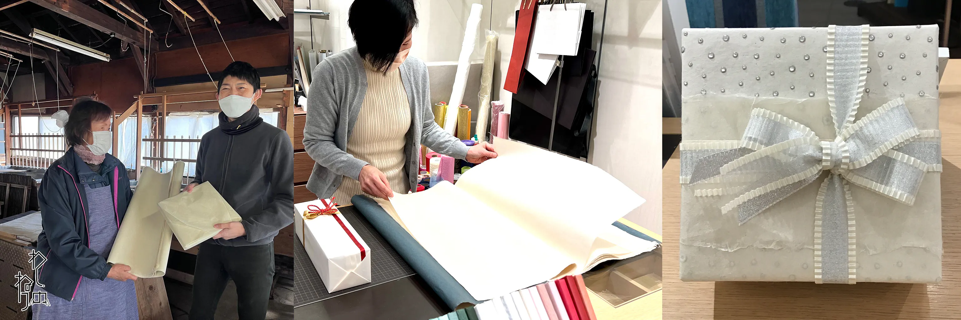 昨年は、日本橋高島屋S.C.でラッピングサービスをしている「つつみ屋工房」さんに包装紙として、私たちが作ったトロロアオイで漉いていただいた細川紙を提供することができました。メンバーの中にはさまざまなアーティスト活動をしている方もいます。継続的に一般生活で使っていただけるよう、小川町の職人さんとともに、企業に商品提供をします。