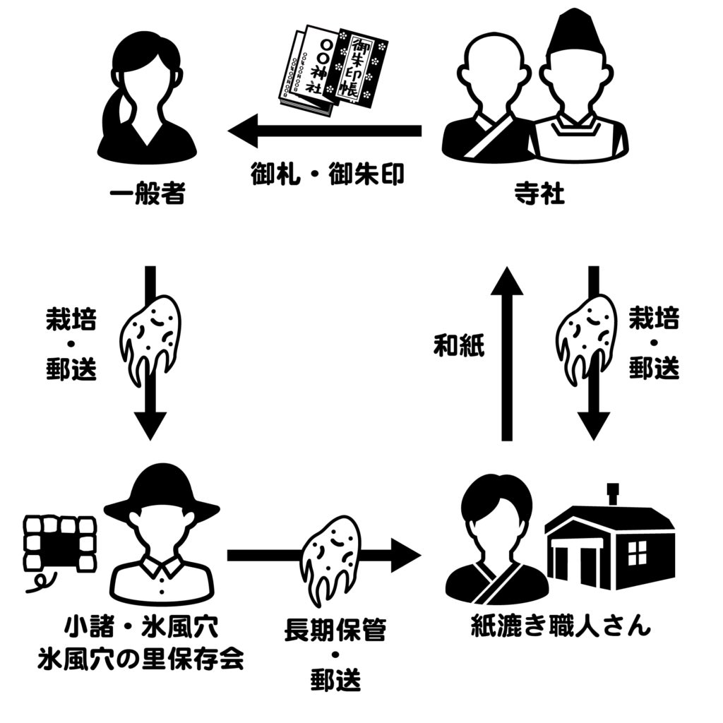 農家さんに届け、職人さんが漉いた和紙が御朱印に。