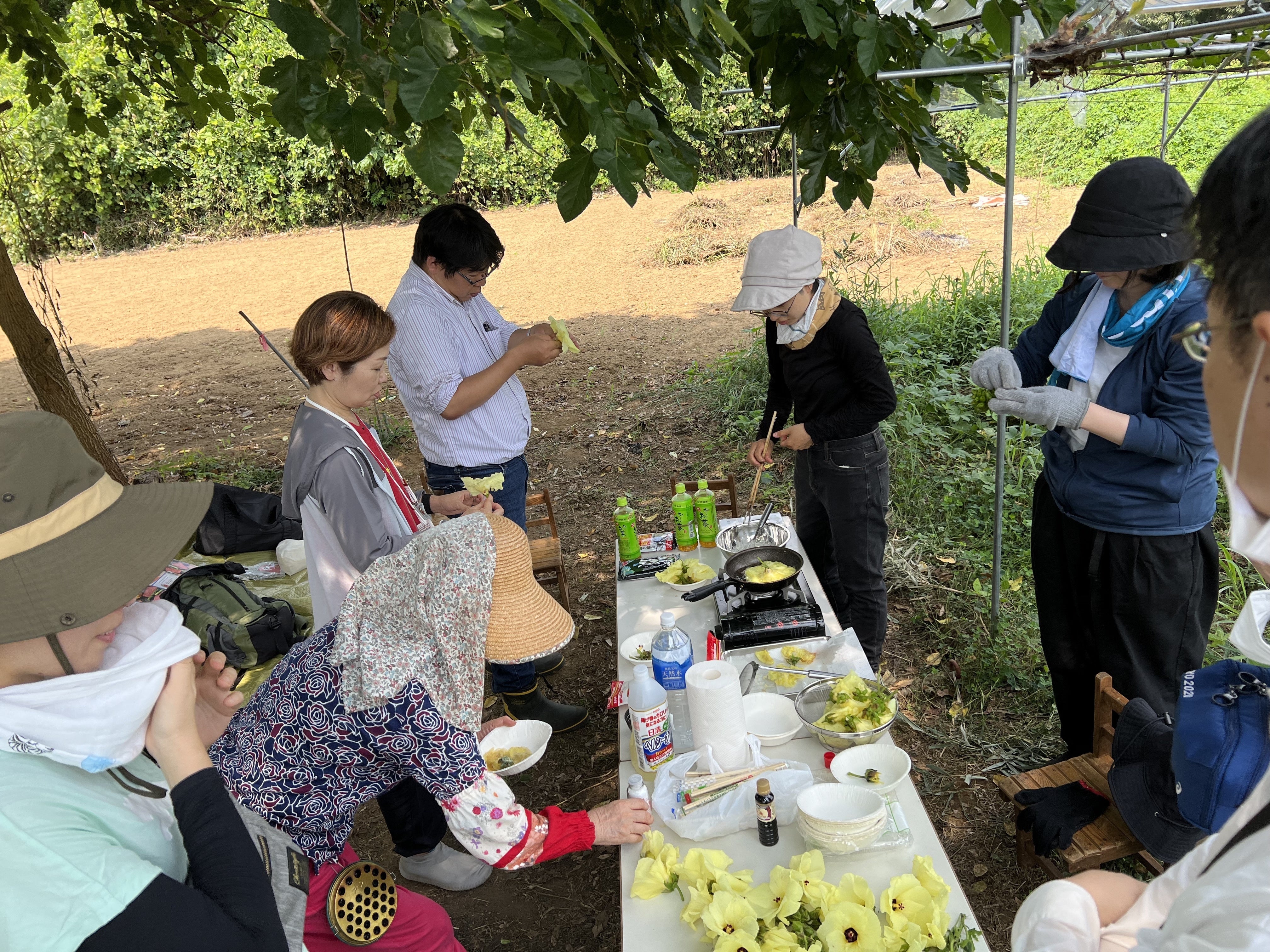 8月の寄合では、とった花や蕾を調理して食べてみました。