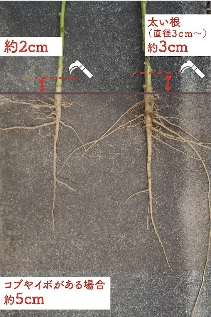 ※太い根の場合は、3cmほどのところで切り落としてください。