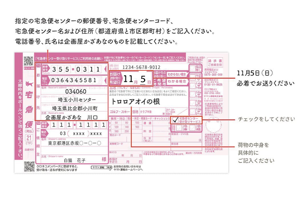 注)出荷日以外の納品は受け付けることができませんので、お気をつけください。