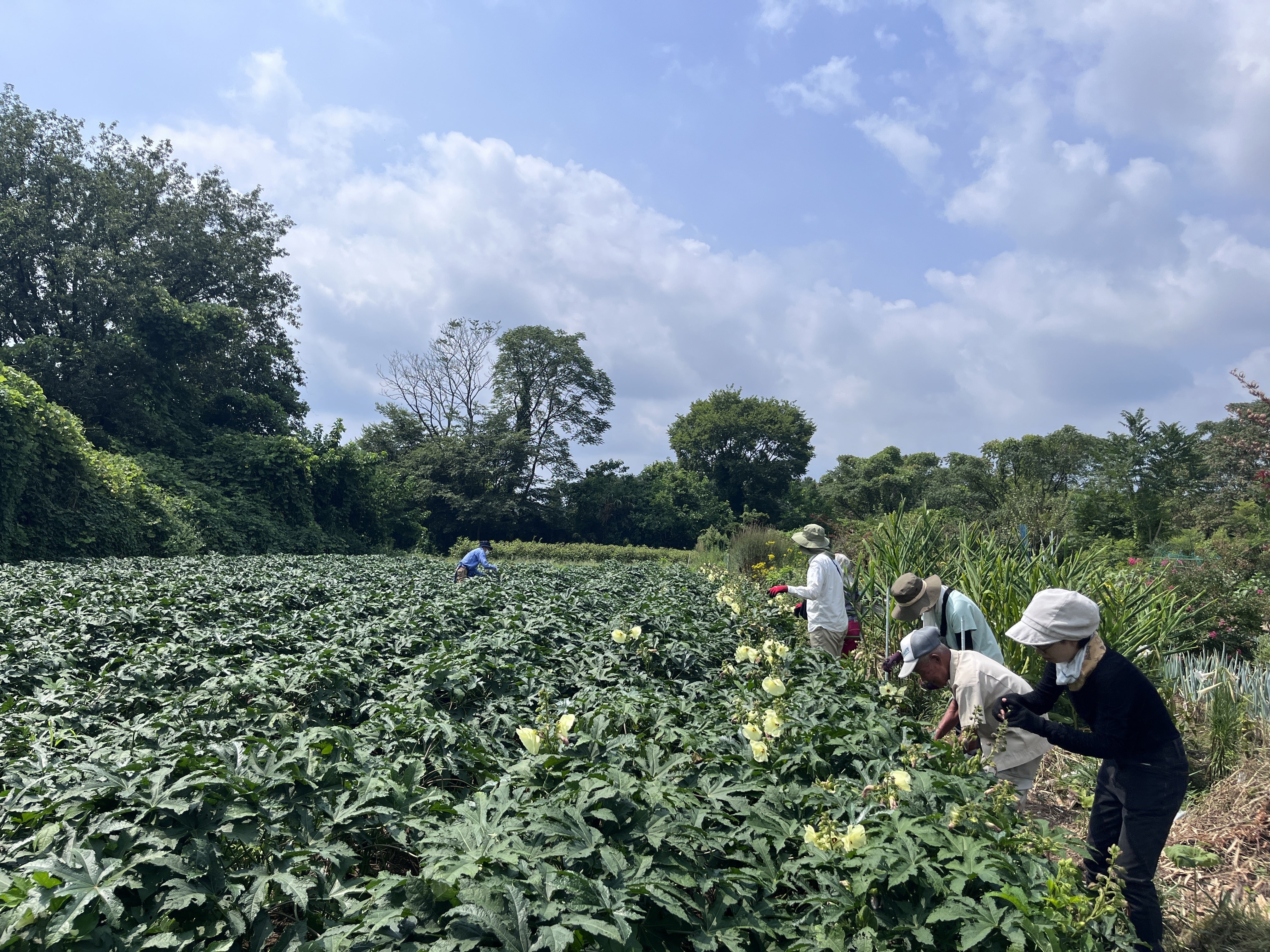 7、8月と現地寄合にご参加いただき、ありがとうございます。農家さんも、摘心摘蕾や花・蕾取りが人数多いとあっという間に終わると喜んでいました。この暑い時期ですから、お昼時はほぼほぼ作業ができず、それも朝夕だけでは取り切れないのが現状です。来年は寄合もですが、農家さんがヘルプした際には、駆けつけられる仕組みができたらと思っています。農家さんとお茶をしながらのお話は、いつも勉強になるとともに、とても楽しいです。あっというまに時間が経ってしまいます。8月の寄合では、とった花や蕾を調理して食べてみました。花は一日花ですが、料亭にもでるような貴重なものです。味や匂いに癖がなくさっぱりしていながら、ネバネバ感があります。今回作ってみたのは、・お花の天ぷら(これは美味です)・鰹節と醤油かけ(醤油ちょっとで、さっぱりいただけます)・蕾の素揚げ(スナック菓子みたいで、つまみにバッチリ)になります。今後、蕾や花を取る際には、捨てるのではなく食べてみてください。トロロアオイはタンパク質、食物繊維も多いですし、ネバネバがありますので夏バテにもいいかと思います。今回は、和紙職人の内村さんとの座談会も開き、今後の和紙の普及についても話し合いました。また、企画しますのでぜひご参加ください。ここから収穫までは、蕾取りに専念です。10月中旬頃に、出荷の日が決まりますので、ネットでの寄合を開催いたします。10月の寄合で、また企画を発表できるよう調整いたします。楽しみにしていてください。