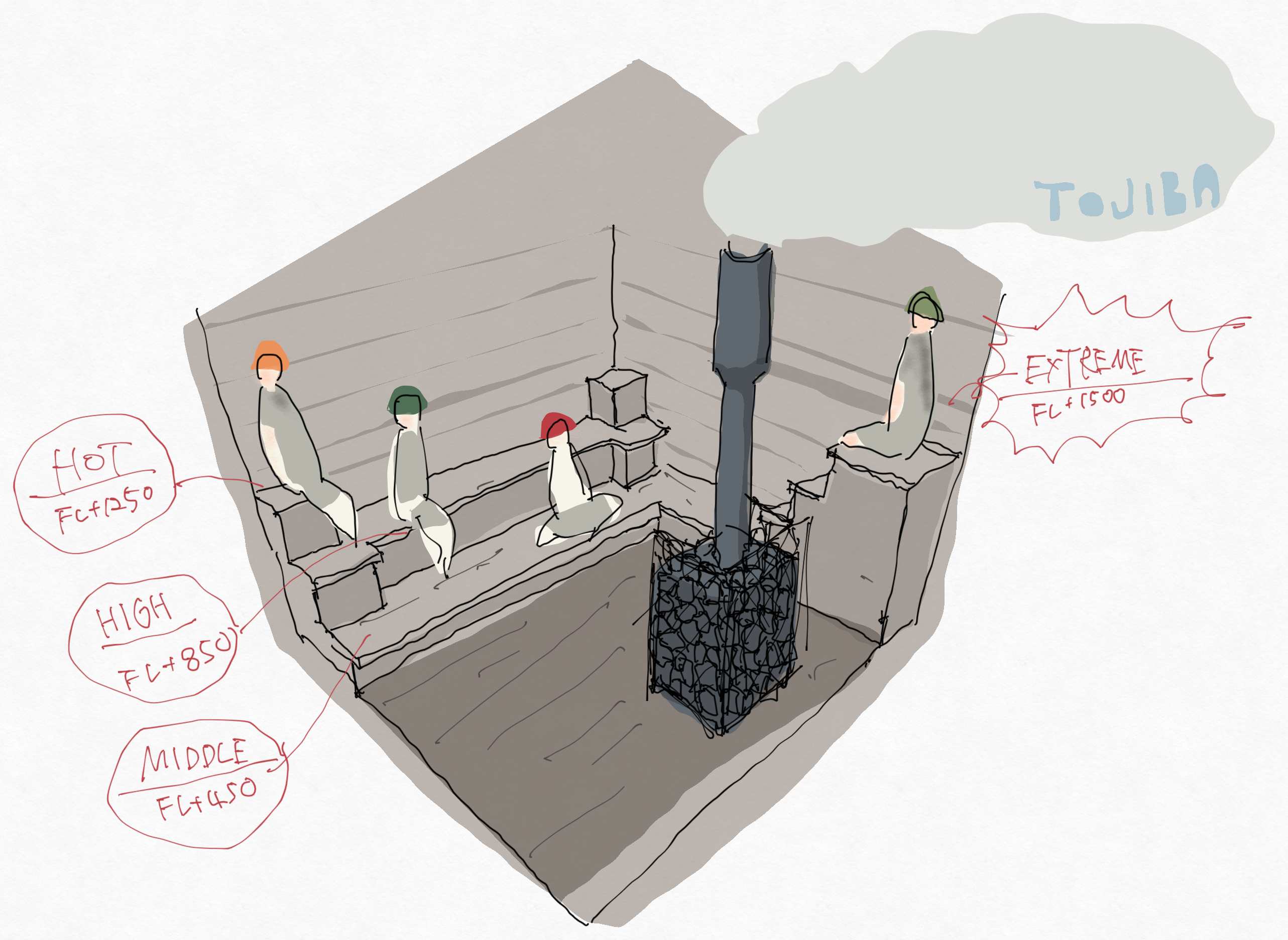 ですので、少し物足りないと感じる(私も感じました)方も多かったため、こちらをもう一段段設けて、ロウリュウを感じられるサウナ室にしたいと思いました。