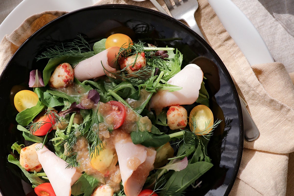 サラダはもちろん、蒸し鶏などの肉料理とも好相性。