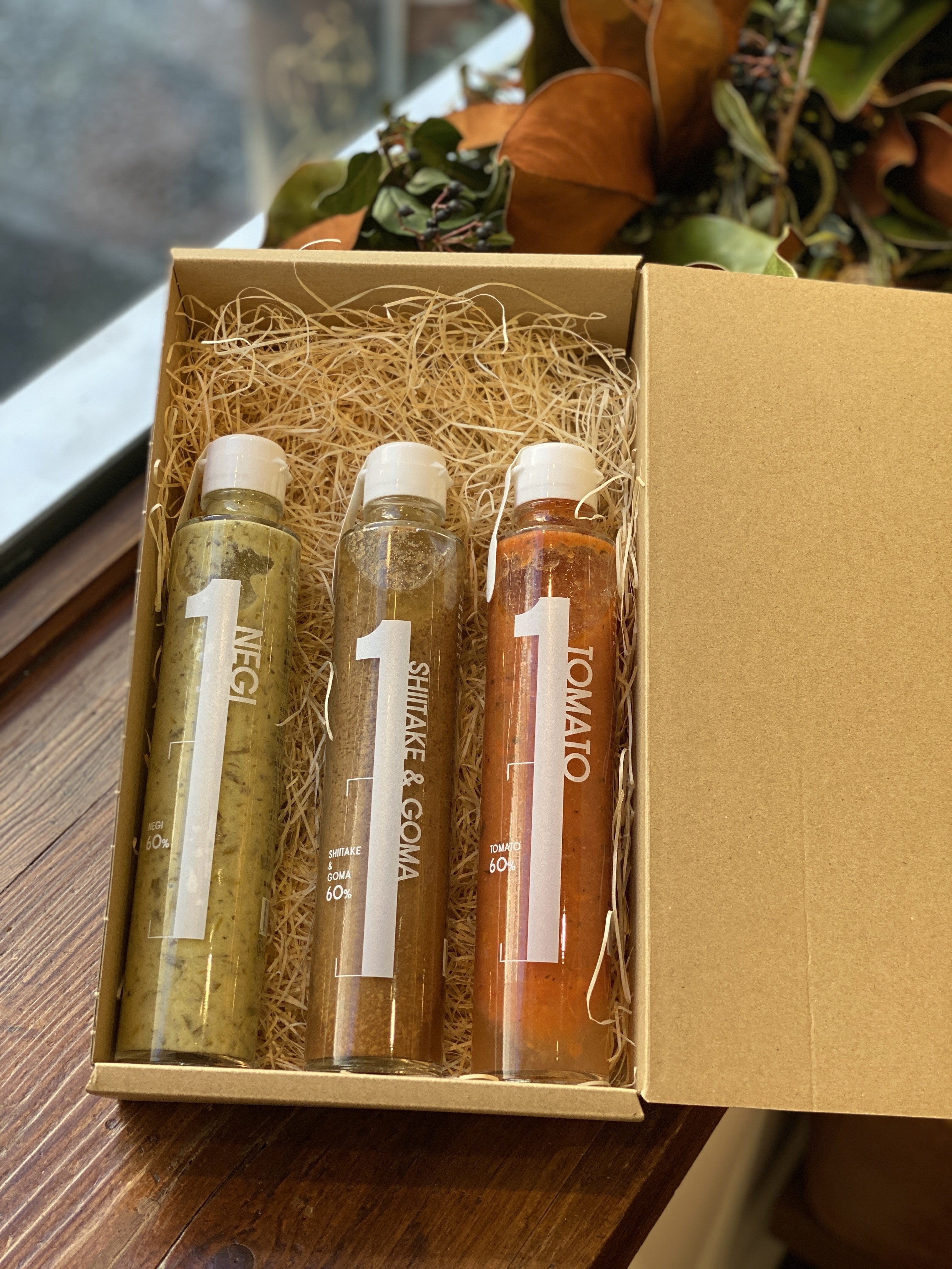 「椎茸ゴマ」「ネギ」「トマト」の人気3本セットに