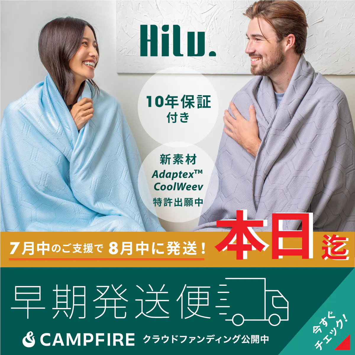 冷感生地は洗濯で効果が落ちやすい…という声もよく聞きます。HILU Bluvetは独自繊維「Adaptex CoolWeev™」により、10年使っても冷感が持続。1日8円で快適、コスパ最強のブランケットです。