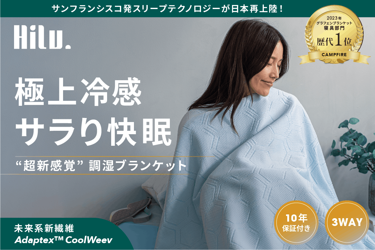 こんばんは。HILU運営チームです。第2段プロジェクトHILU Bluvet(ヒル・ブルベット)8月中発送キャンペーンを実施中です。8月中発送キャンペーンは残り3日!7月31日までのご支援で、先着100名様に8月中にHILU Bluvet(ヒル・ブルベット)を発送いたします。\ ご支援はこちらから /https://camp-fire.jp/projects/837319/view?ctoken=U60IsN4tv5HhIlLt猛暑が続くこの夏に、「冷蔵庫で冷やしたみたい」なひんやり触感のブランケットで寝具をアップデートしませんか?HILU Bluvetは10年間の品質保証付き。スポーツウエア生地と同じジェル紡糸製法で作られたEco-cool Polyfiber(エコクールポリファイバー)を使用しています。Instagram @marin_es32プロ野球選手、佐藤都志也選手もご愛用。睡眠中は軽い運動と同じ熱量消費。300kcl消費して、コップ1杯の汗をかいている。だからこそ、スポーツウェア発想の寝具で快適な夜を。この夏をサラスベ&ひんやり触感の寝具と共に。皆さまのご支援を、心よりお待ちしております。HILU Japan 一同最新情報は公式SNSでも配信中!【公式SNS】𝕏(旧Twitter) :https://x.com/hilujapanInstagram :https://www.instagram.com/hilujapan/Facebook :https://www.facebook.com/profile.php?id=61576802175429LINE :https://lin.ee/GoSOc7V