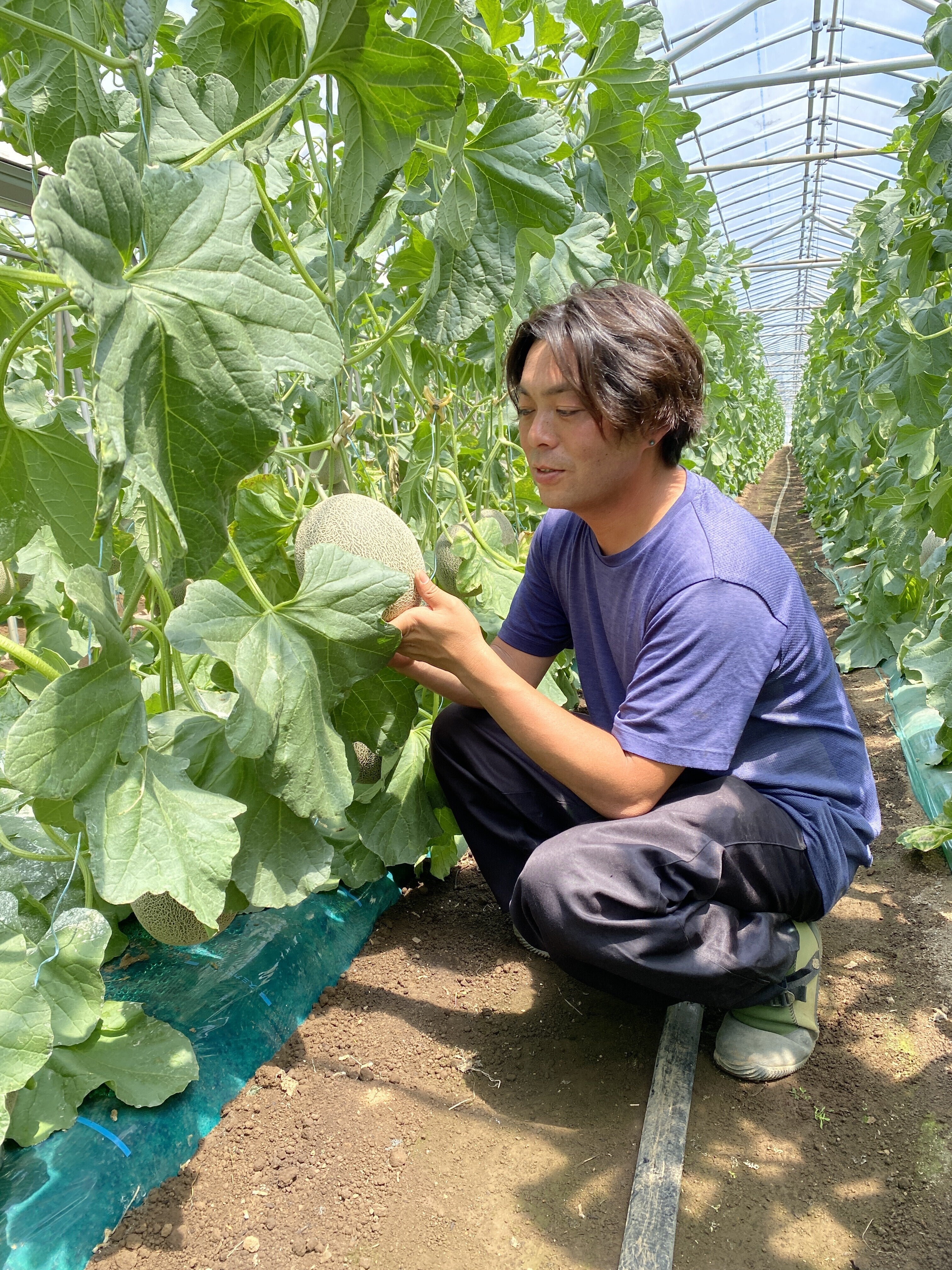私が住んでいる所は、日本で一番最初にタカミメロンの栽培をスタートした千葉県の飯岡町(現旭市)です。近年メロン農家が減少してきており、メロンの栽培もどんどん簡略化されてきて本当のメロンの美味しさを味わえる場が少なくなってきています。私はメロン栽培において土作り、手入れ、防除、交配、選定などを手間暇惜しまず全力で行い、メロン本来の味、旨さを伝えていきたいと思っています。