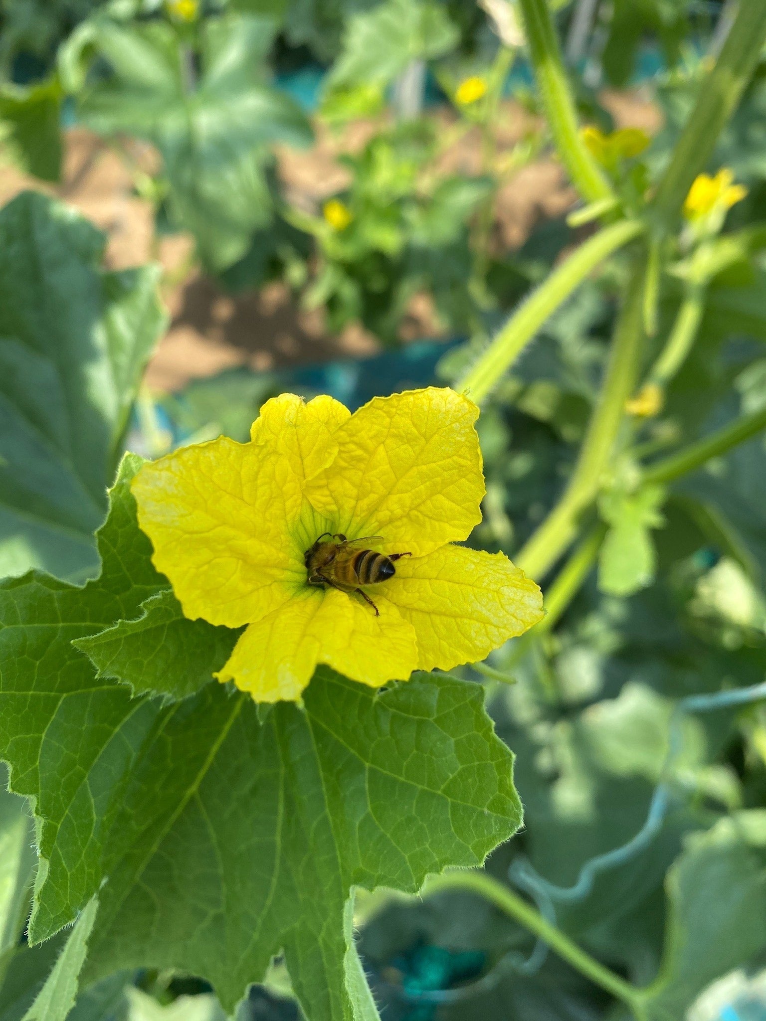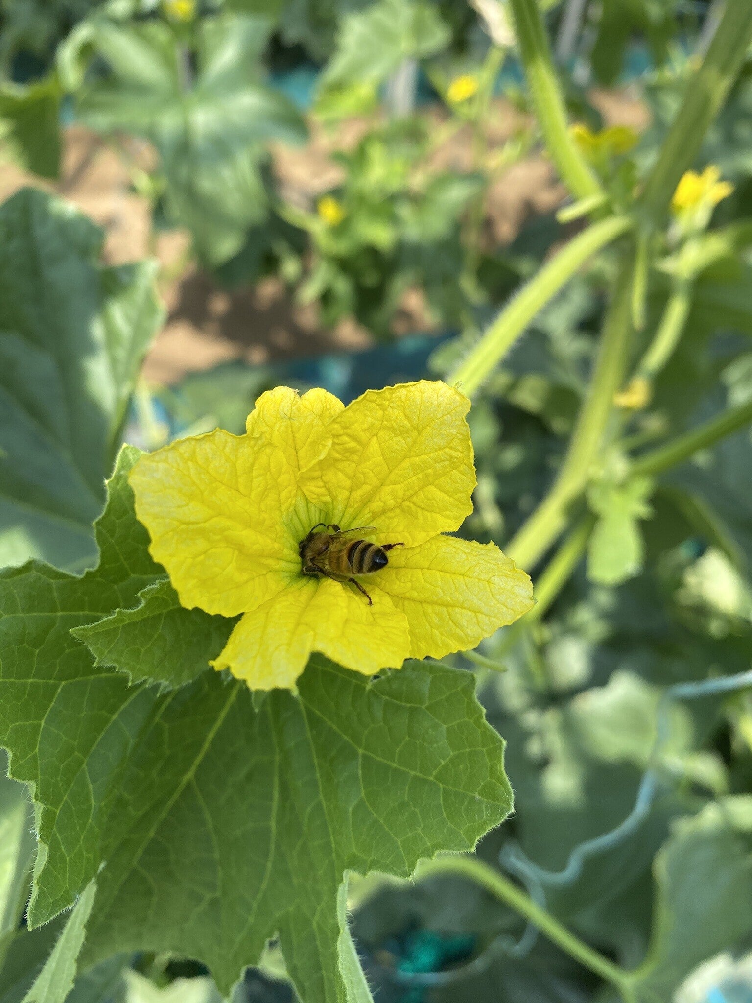 2023/04/17 17:00こんにちは。クラウドファーミング運営チームです。この度は【千葉県旭市 清左ヱ門のタカミメロン】をご支援いただき、誠にありがとうございます!生産者の石毛さんからレポートが届きましたので皆さんにお届けいたします!*******************************************************************3月30日 ミツバチが交配をしている様子です。交配方法は、自然交配と人工交配があります!ミツバチ交配は自然交配の部類に入り、人工交配はホルモン剤を蕾に吹き掛けて強制交配させる方法です。自然交配は人工交配より手間がかなり増えるので、最近では人工交配が主流になってきてます。ミツバチ交配に拘る理由は、人工交配より糖度のばらつきが少なく、果肉もしっかり追熟し、そしてメロンの味がしっかりするのでこの交配栽培を続けています!人工交配のメロンは甘いですが、メロンの本来の味というものがあまり感じられず、追熟せず硬いまま、食べて青臭い等言われるのも人工交配が理由だと考えています。なので、うちでは ミツバチ交配に拘っています!こちらが、交配後、着花した玉です。メロンの赤ちゃん誕生です。*******************************************************************以上がメロン農家石毛さんからの第二回成長レポートでした。メロンの赤ちゃんがついに誕生しましたね。次回のレポートでは摘果の様子をお届けします!次回もお楽しみに♪ もっと見る
