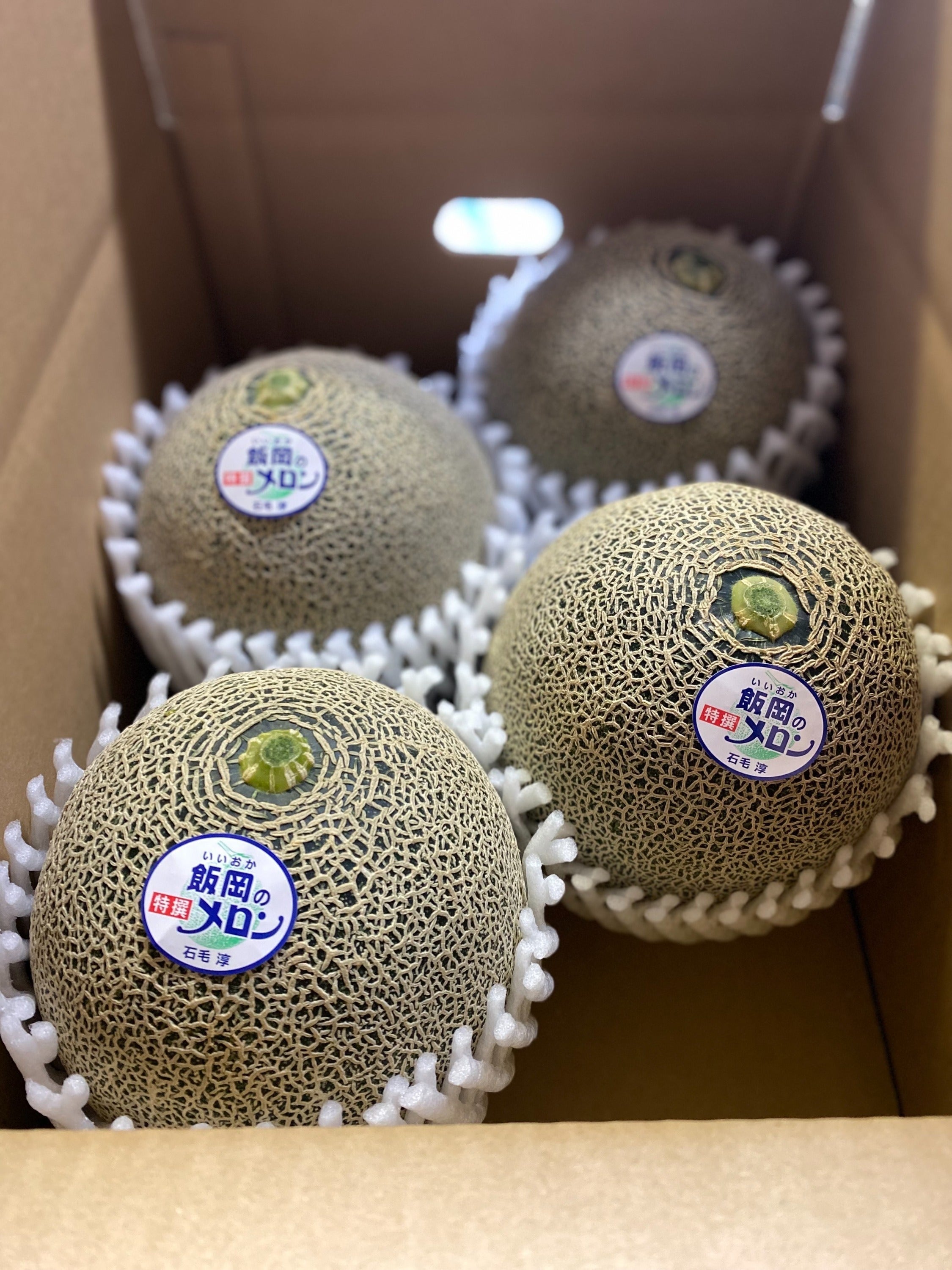 特に網目の美しいメロンを選び、ギフト用ボックスに入れました。