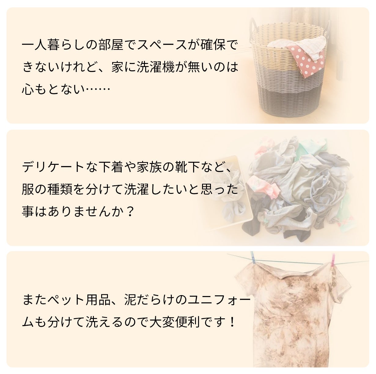 毎日使用するマスクはもちろん、デリケートな下着やペット用品など、他のものと一緒に洗濯機で洗いたくない小物類の洗濯にもオススメです!