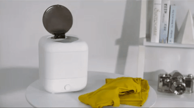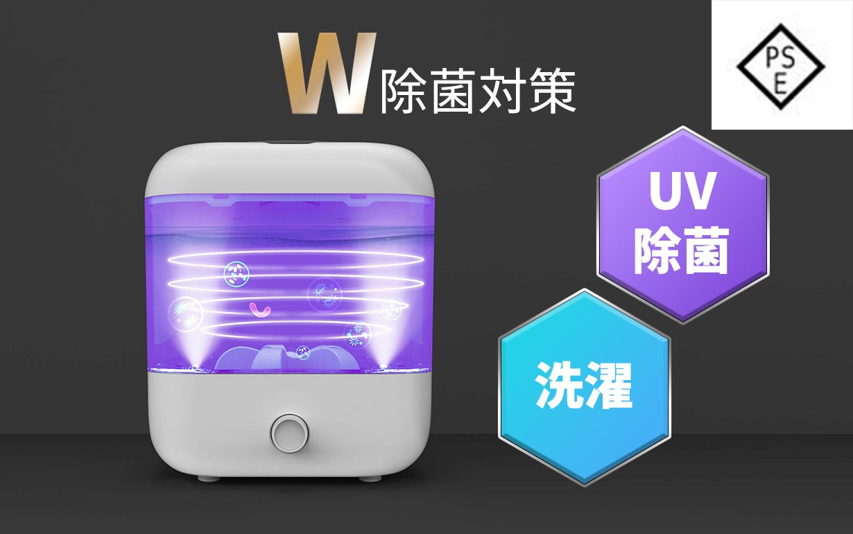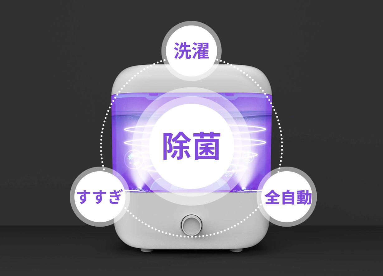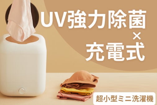 「UV除菌機能付き充電式洗濯機」は少量の洗い物を洗濯と同時にUV除菌ができる充電式の洗濯機です。