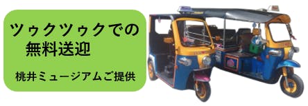 桃井ミュージアムさん所有のツゥクツゥクで無料送迎いたします。