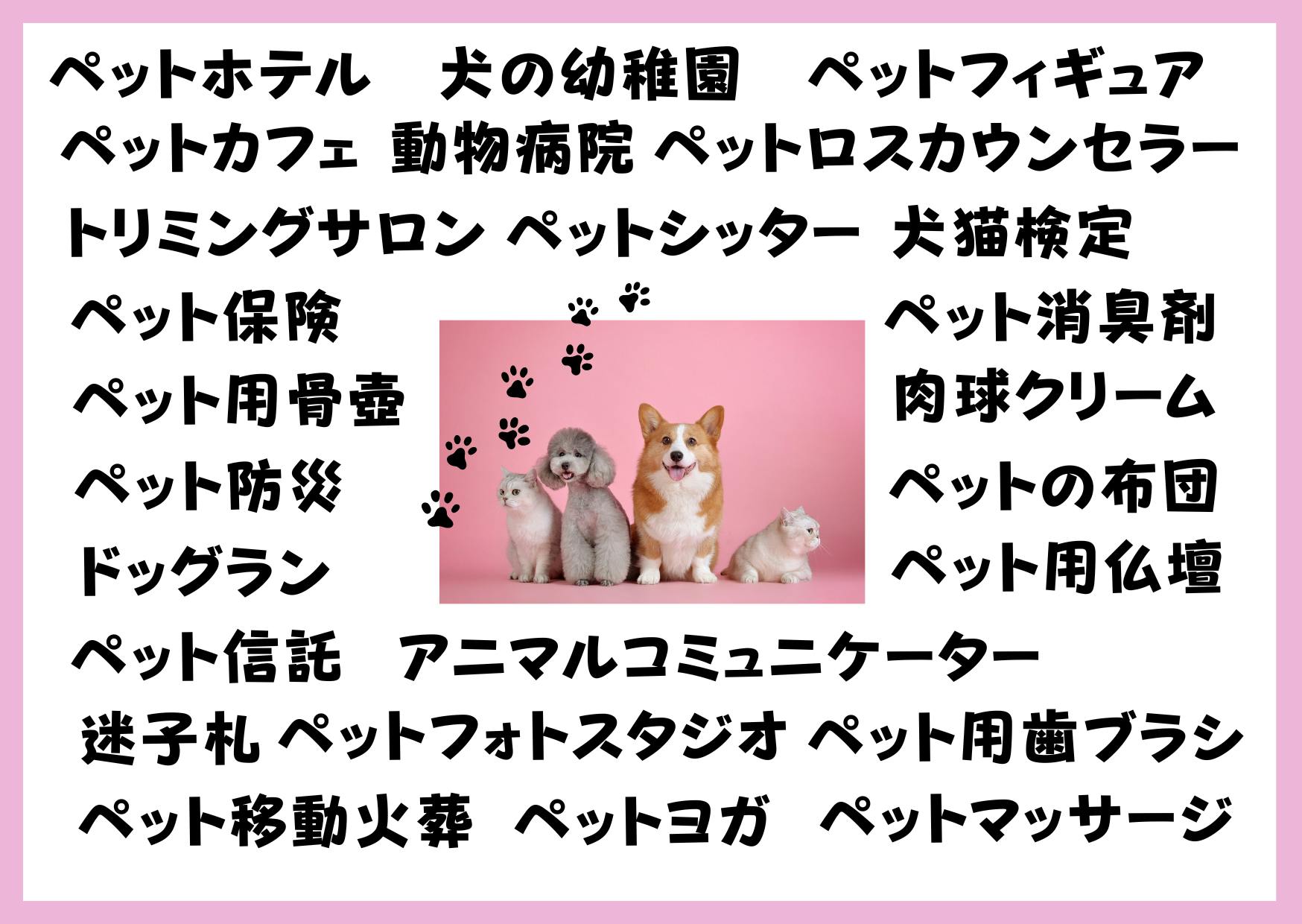 ペット業界を幅広くあげてみましたが、まだまだたくさんあります!