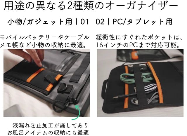 防水で変幻自在。豊富なオプションを組み合わせることで、あらゆるシーンに適応するバッグが誕生いたしました!