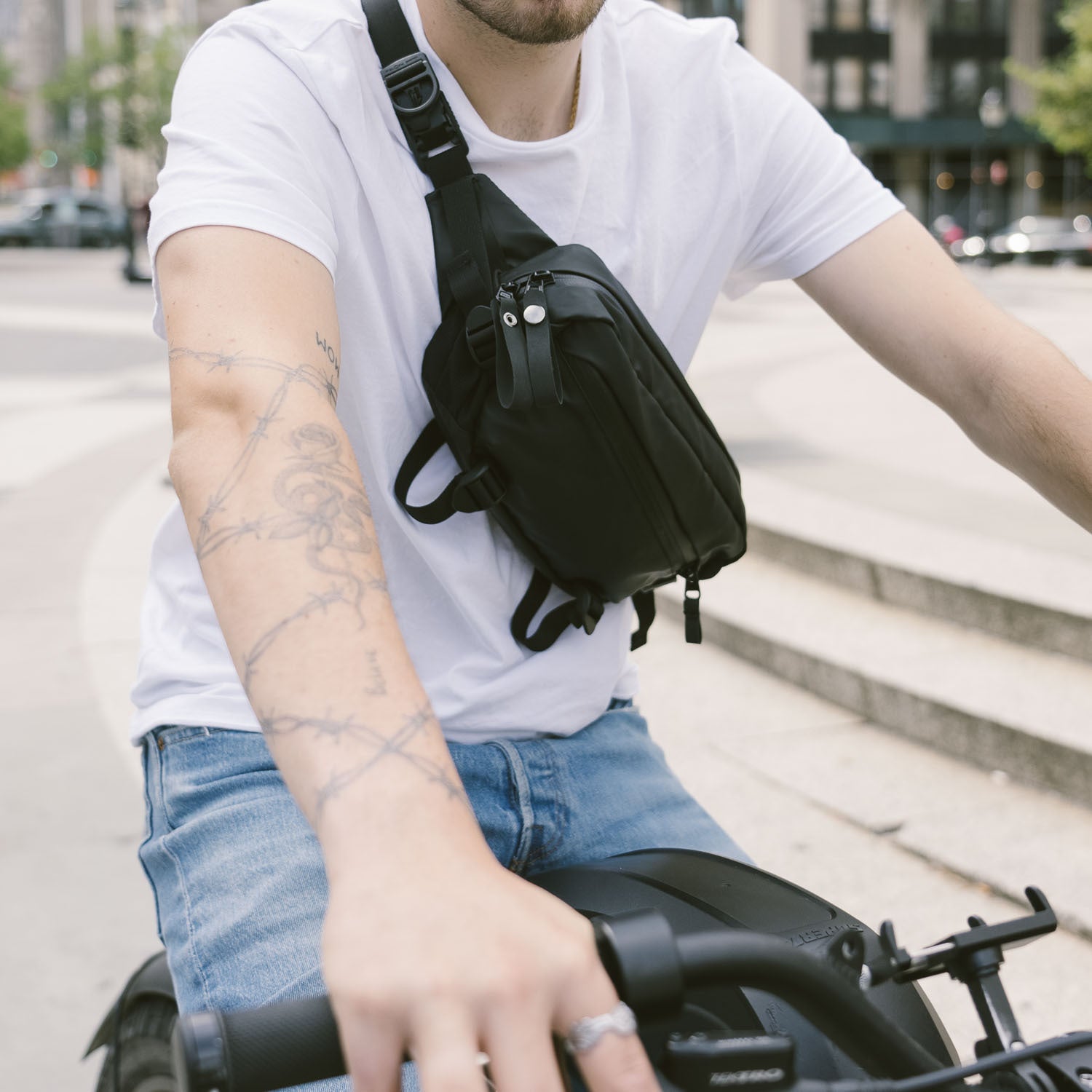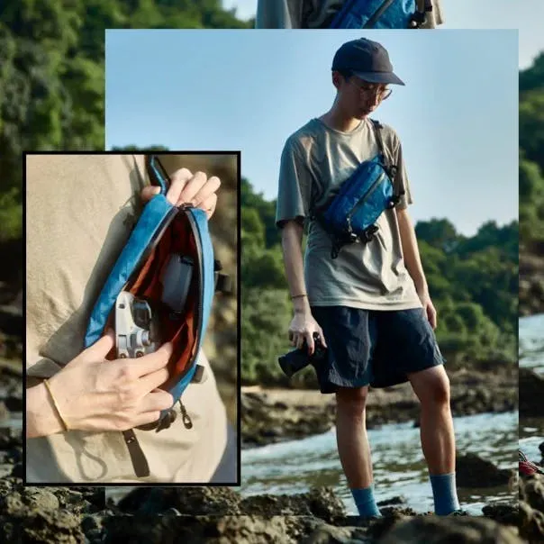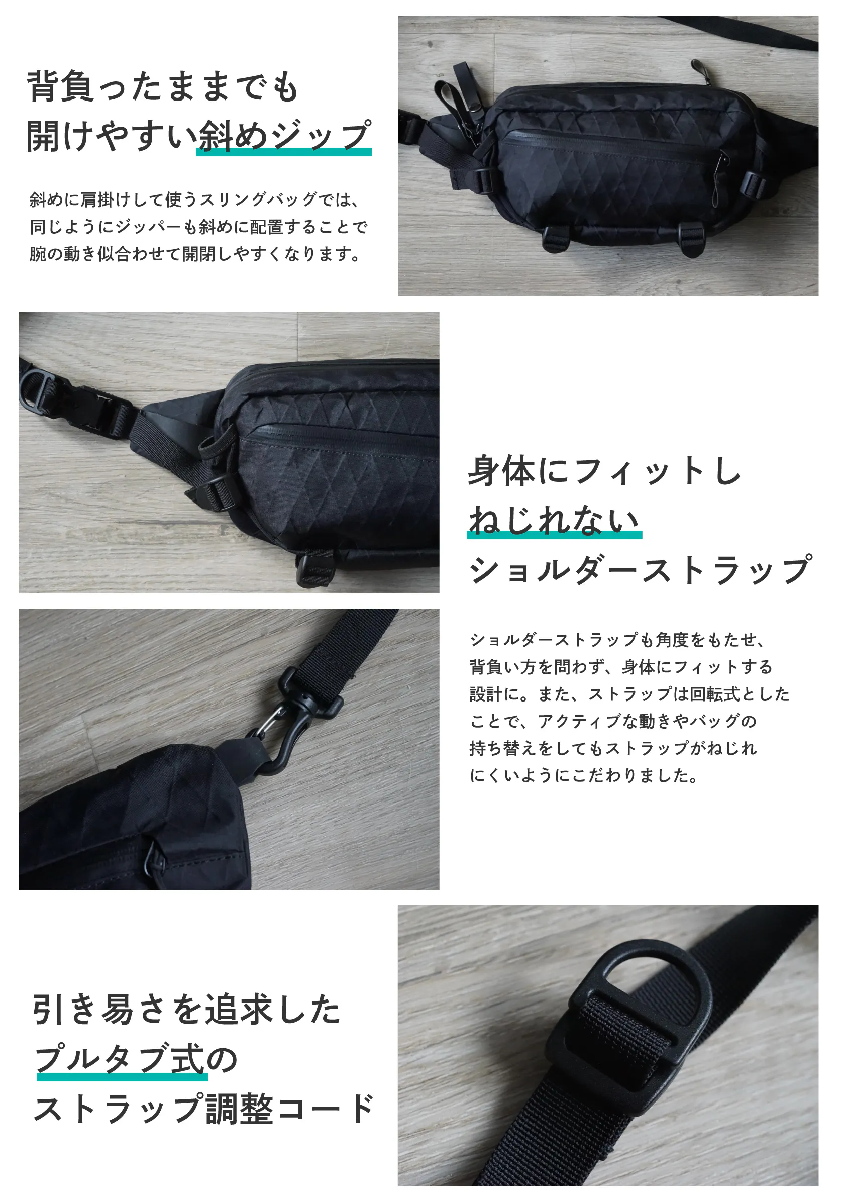 お気に入りのガジェットやカメラを持ち運ぶために、20以上のこだわりを詰めこんだスリングバッグで、日常やアウトドアをお楽しみください!