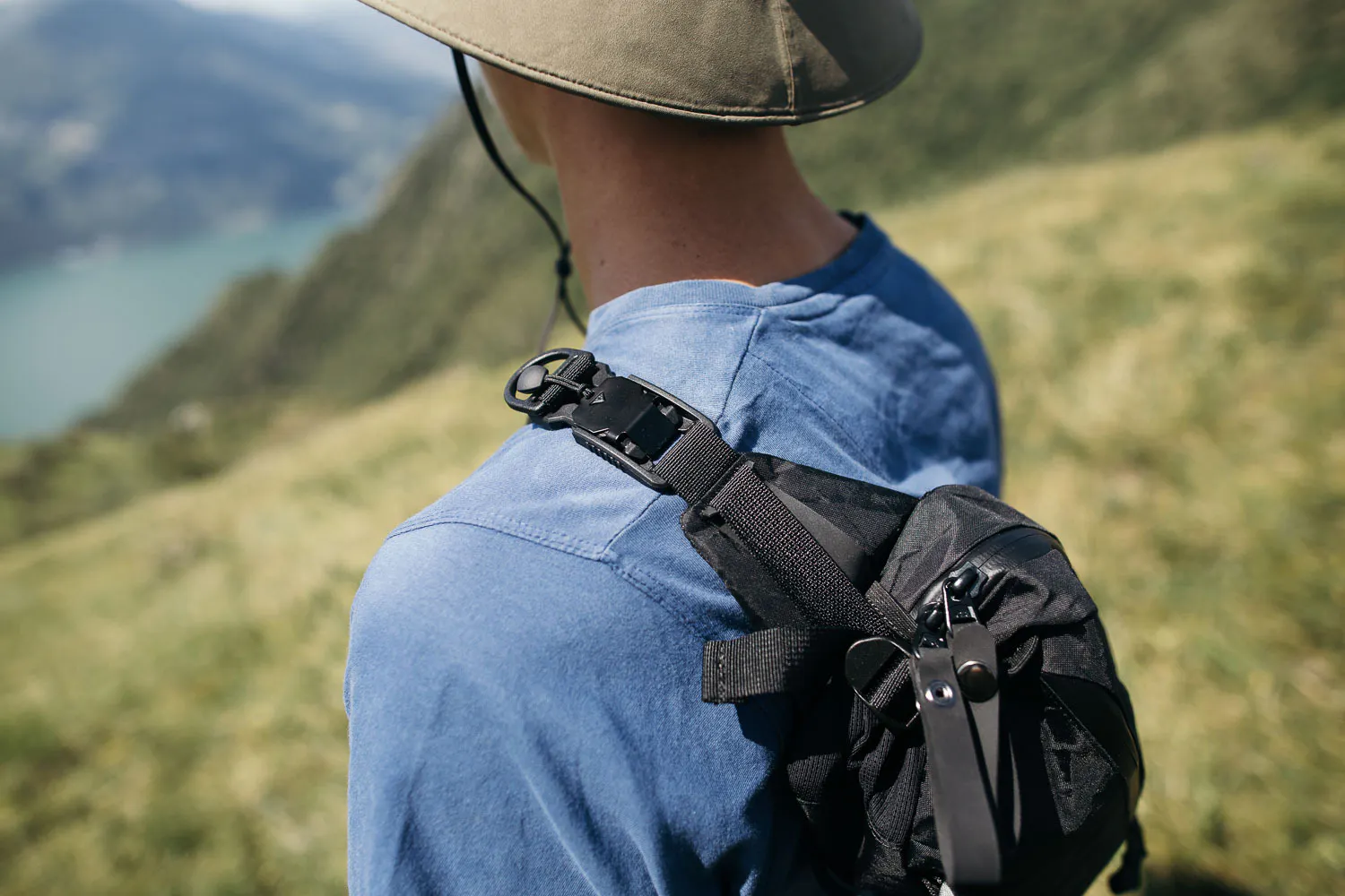 背負い方を変える際や、スリングモードからウエストポーチモードへの変更もスムーズに行うことが可能です。