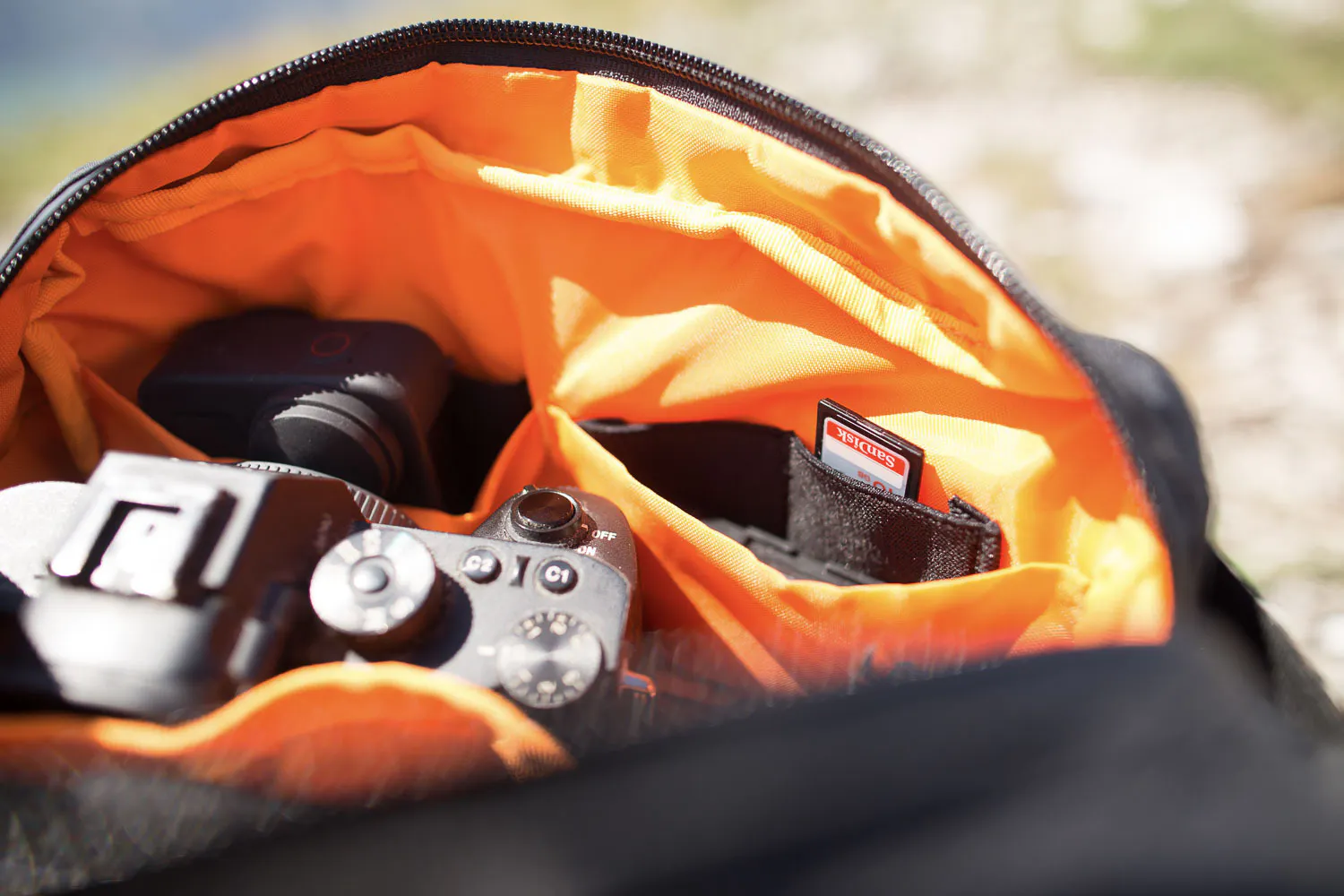 天候に関係なく、また、都市からアウトドアまで利用可能なバッグを実現するため、高耐久ナイロン素材を使用。防水性、耐久性、耐摩耗性に優れた生地は、カメラやガジェットの持ち運びに最適です。