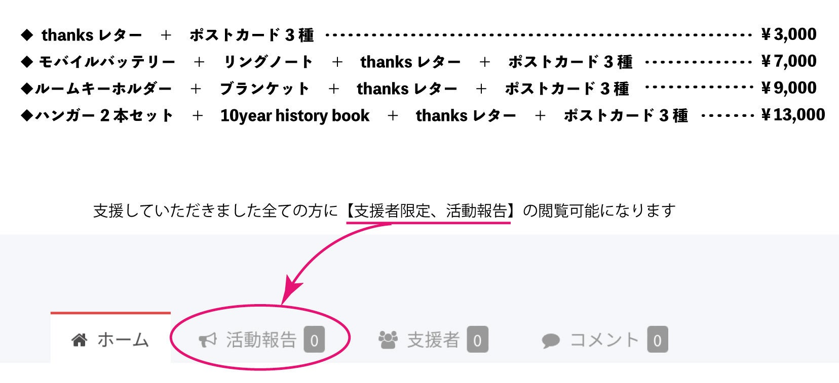 皆様からご支援いただきました資金は、全てイベントの準備費や会場費、リターン品の制作などに使わせていただきます。