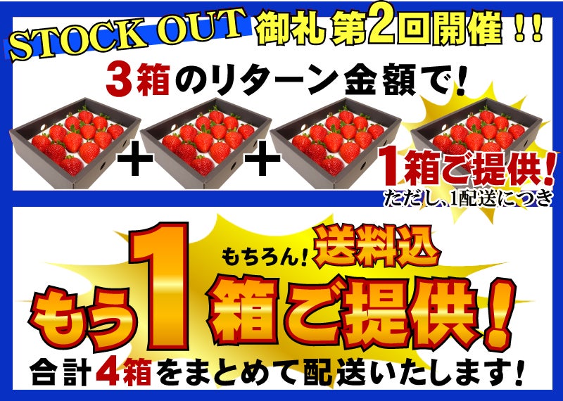 さらに、すぐに完売御礼となりました【プレミアム大玉あまおうギフト約420g×3箱+1箱プレゼント♪】の3月収穫分をリターン品とさせていただきました。