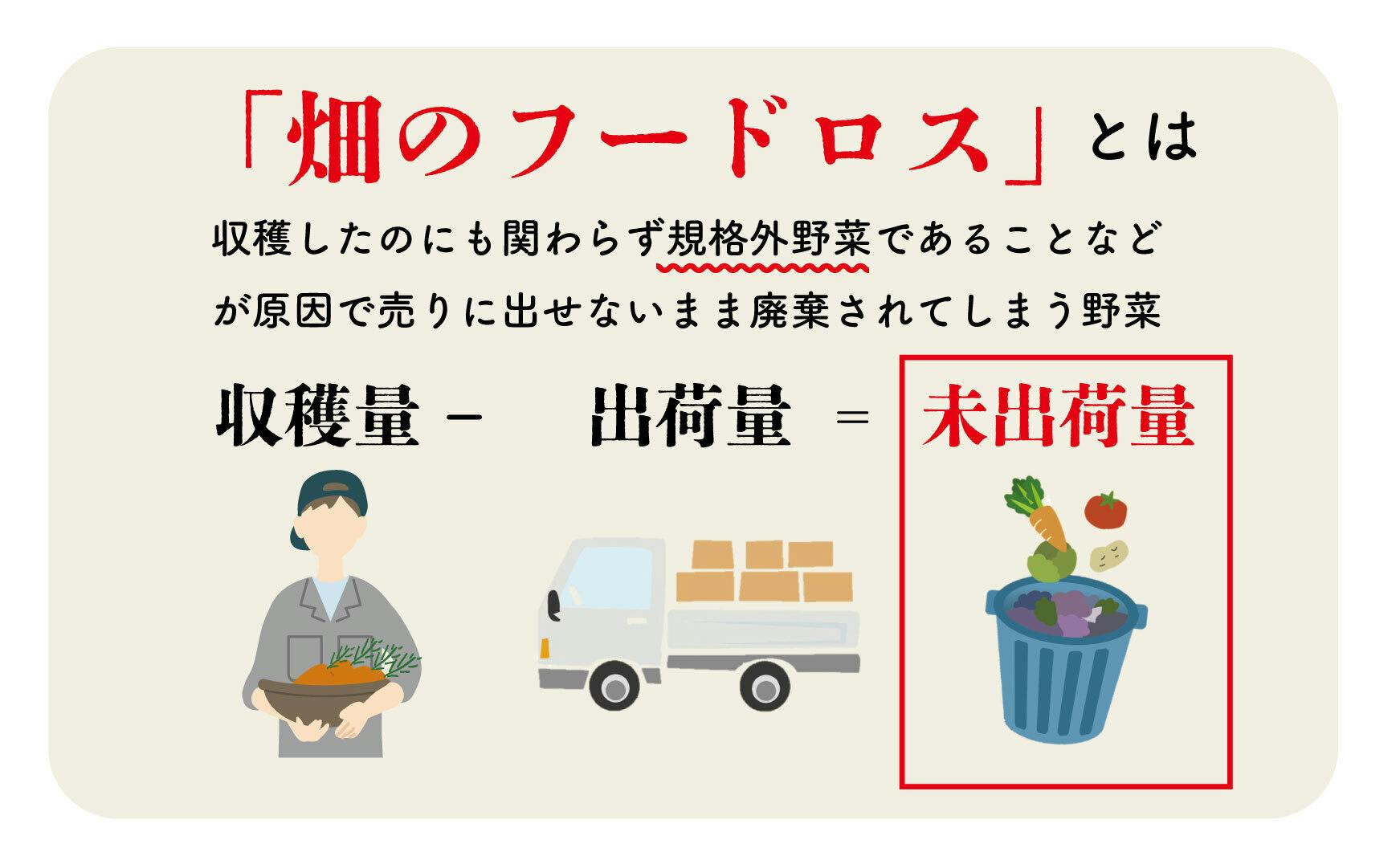 畑のフードロスとは農家さんが大切に作ったお野菜が規格外であることなどが原因で出荷されずにそのまま廃棄されてしまうことを言います。