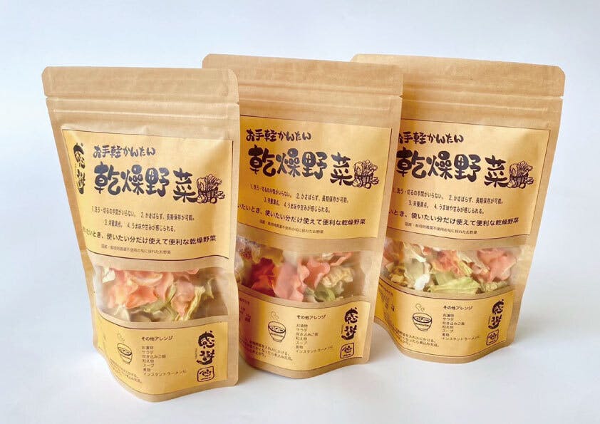 いろいろ商品を作っていく中、乾燥させることで長期保存を可能にし、野菜本来のうまみを楽しめ、お手軽・便利に長く使える乾燥野菜が完成しました。