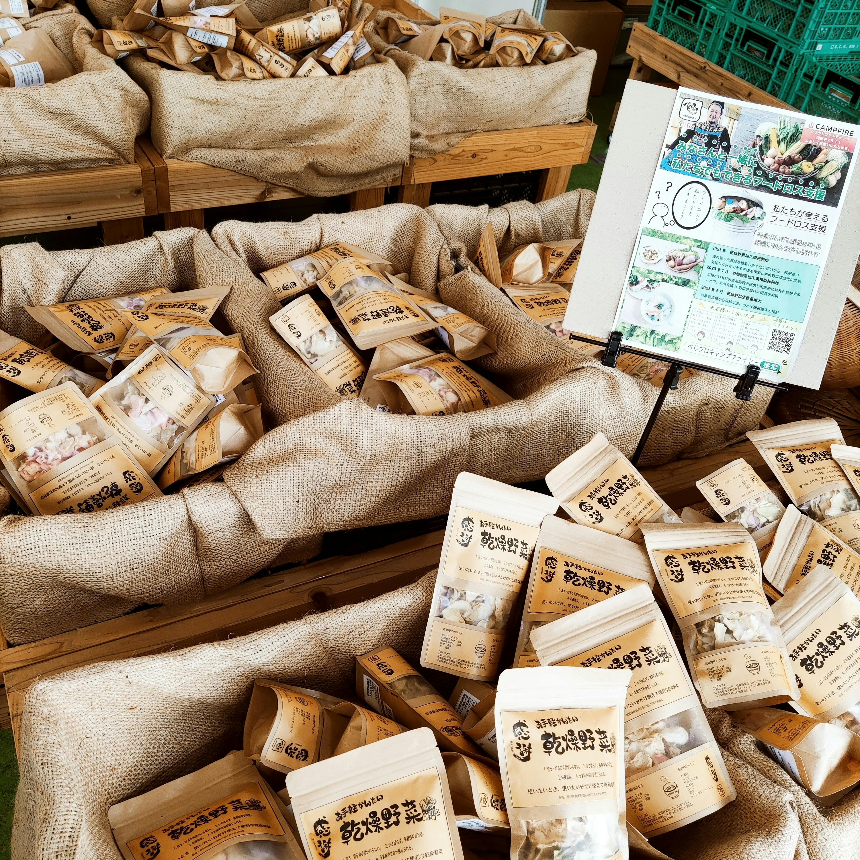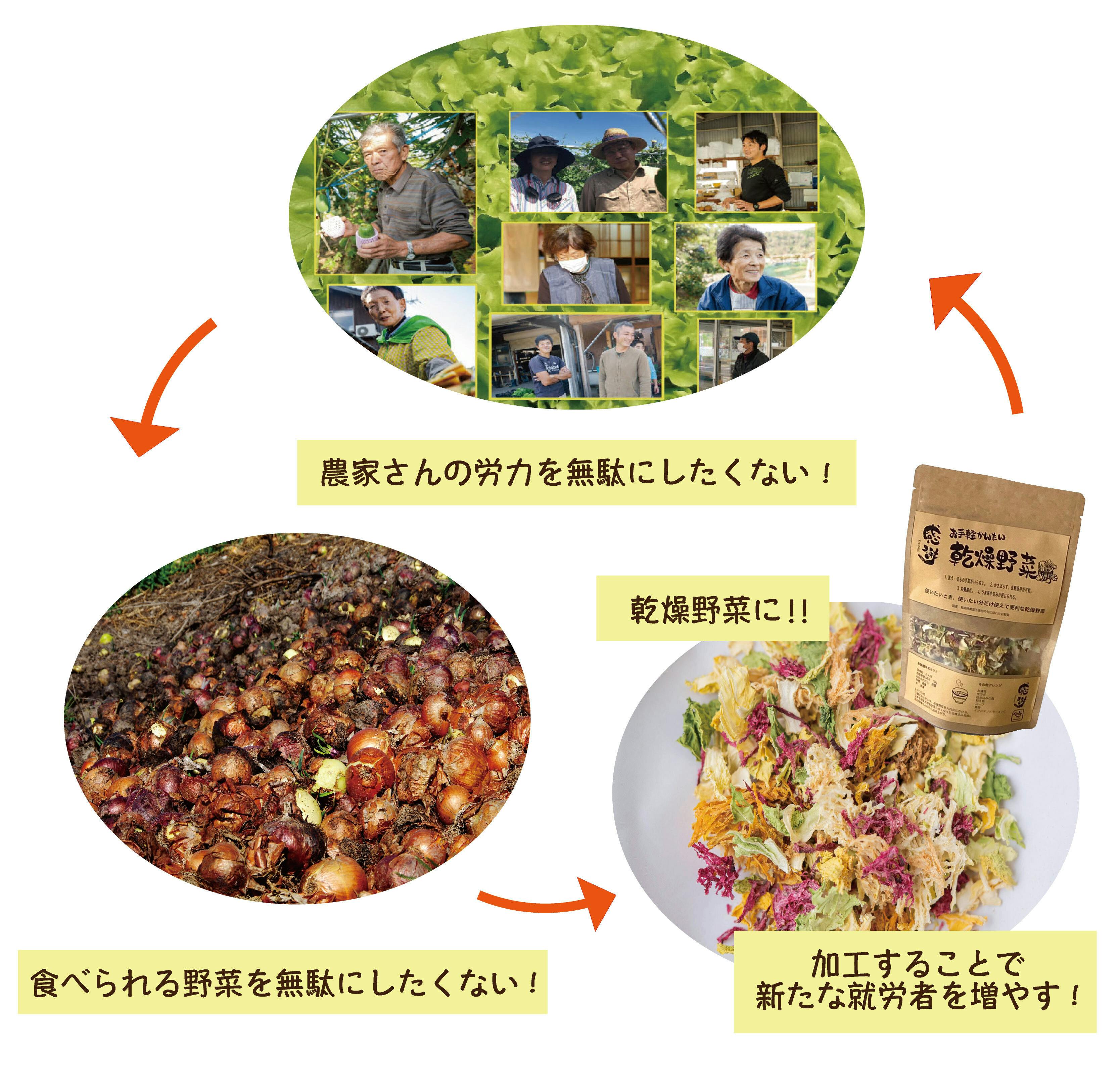 乾燥野菜を通じて規格外野菜でもこんなに美味しいんだと知ってもらい規格外のお野菜を購入していただき、食べていただけることが日常になればと思っています。
