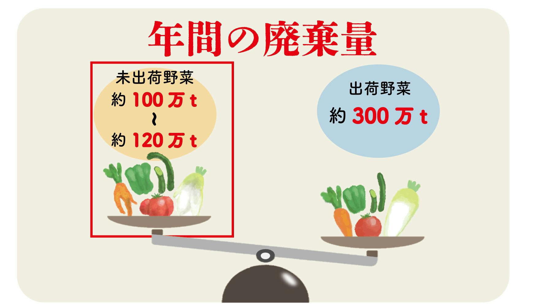 『年間の廃棄される量』は先ほどの野菜のフードロス量から出荷後に廃棄される野菜が約300万tと考えられています。
