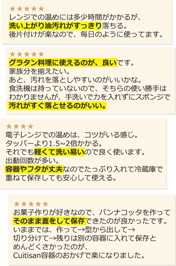 Cuitisanは、冷凍・冷蔵保存から電子レンジ、オーブン調理まで様々なシーンで使用できるからこそ、毎日 便利にお使いいただけます。
