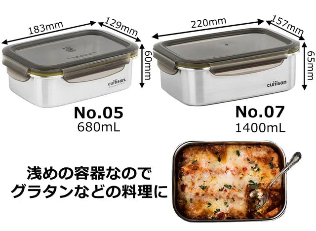 ステンレスボウルとおかず浅めでグラタン調理などに向けたNo.5,No7、深めのカレーやシチュウ保存・調理できるNo.4,No.6本当に便利なCuitisanのオススメセット