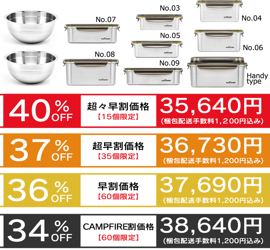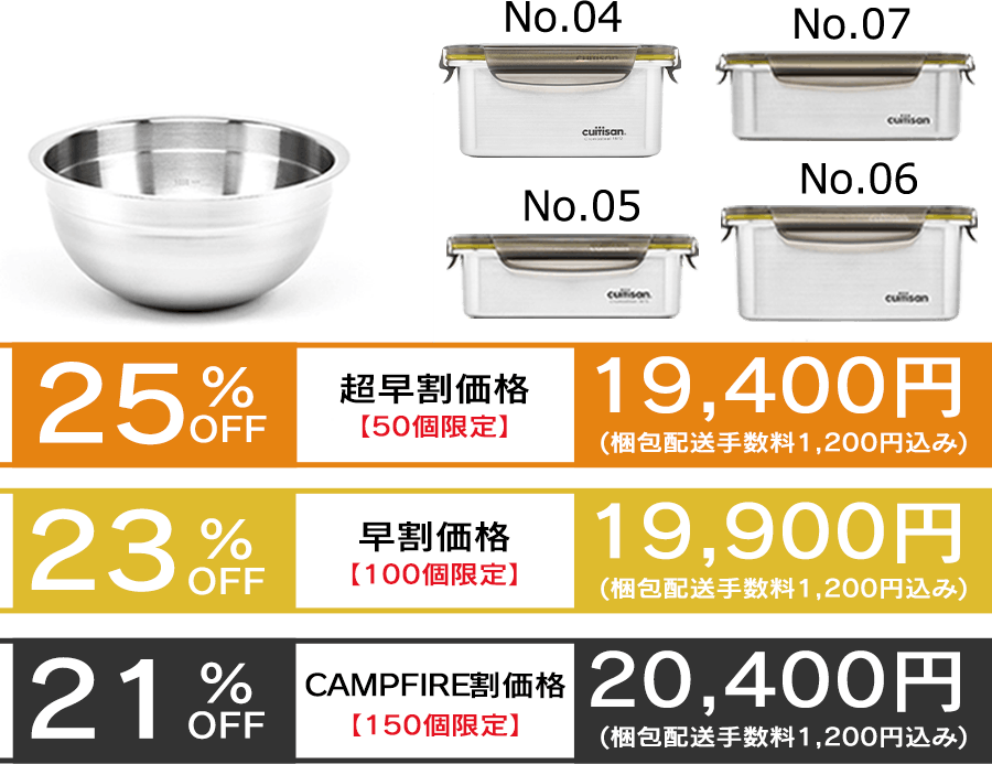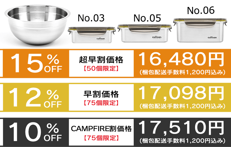 この価格でCuitisanのステンレス容器を入手できるのは、このCAMPFIREのクラウドファンディングのみとなります!!