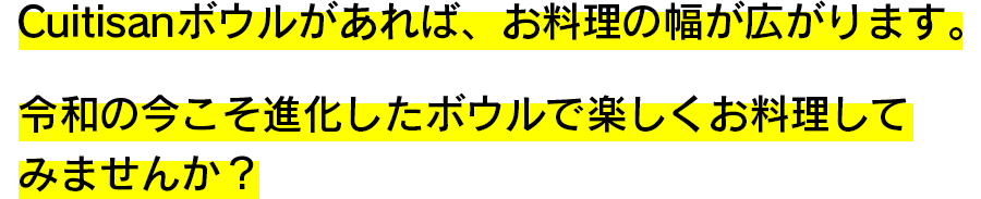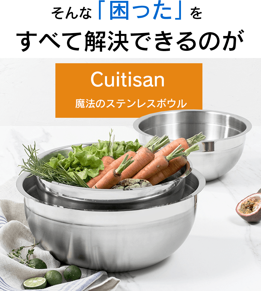 毎日のお料理に欠かすことができない洗う・混ぜる・あえる・こねる・・・これらの作業を一手に担っているボウル。 その便利なボウルにCuitisanだけの特殊技術の『加熱』を加え、万能ボウルとして日本のキッチンライフをより便利に快適にサポートしたいと言う思いからこのプロジェクトをスタートいたしました。