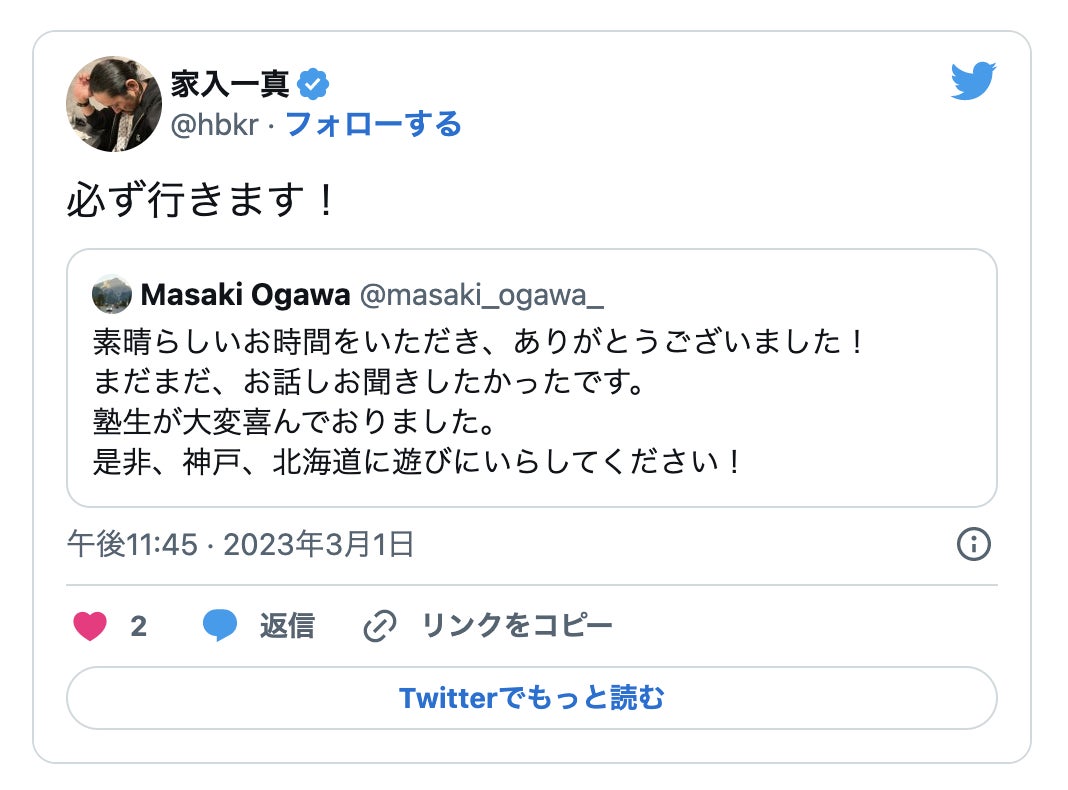 会が終わった後も、心あたたまるメッセージを送っていただきました。家入さん、本当に、ありがとうございました!