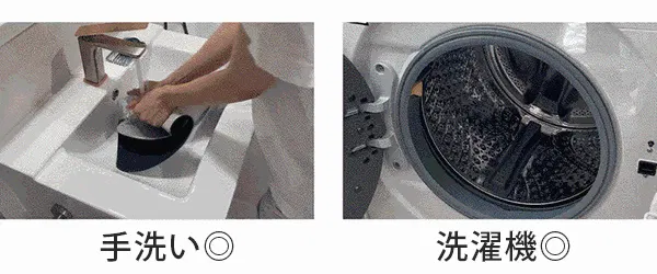 A、洗濯機で洗う事は可能ですが、長時間の洗濯は推奨しておりません。また、色落ちが発生する場合がございますので単独での洗濯を推奨しております。