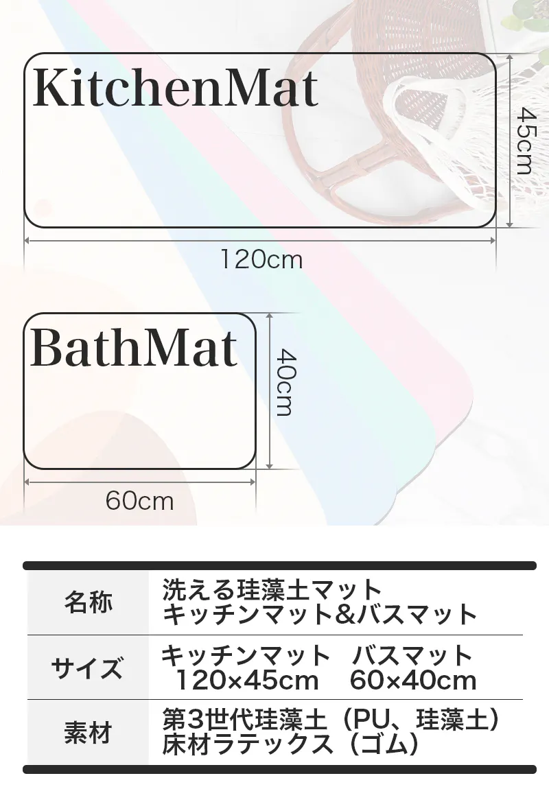これらを補ったのが今回ご紹介する「洗える珪藻土マット&キッチンマット」