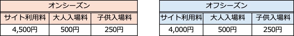 ※オンシーズン:大型連休・お盆・年末年始、オフシーズン:左記の時期以外