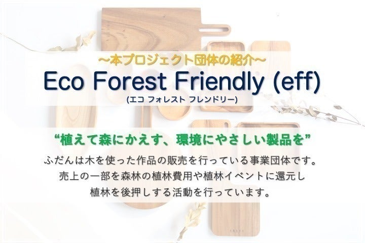 売上げを植林事業に還元する活動をしています。「植えて森にかえす、環境にやさしい製品を」京都の木工芸オンラインショップはこちらから→https://eff.theshop.jp