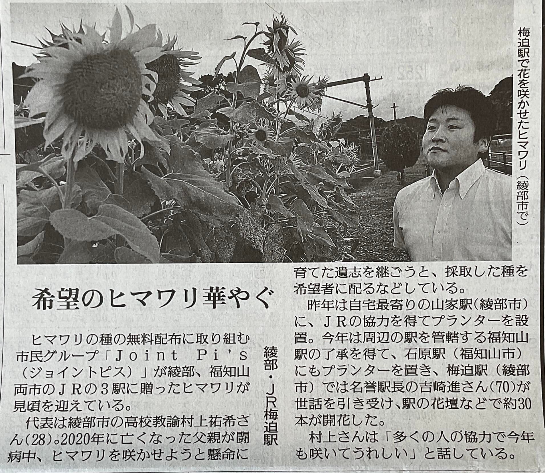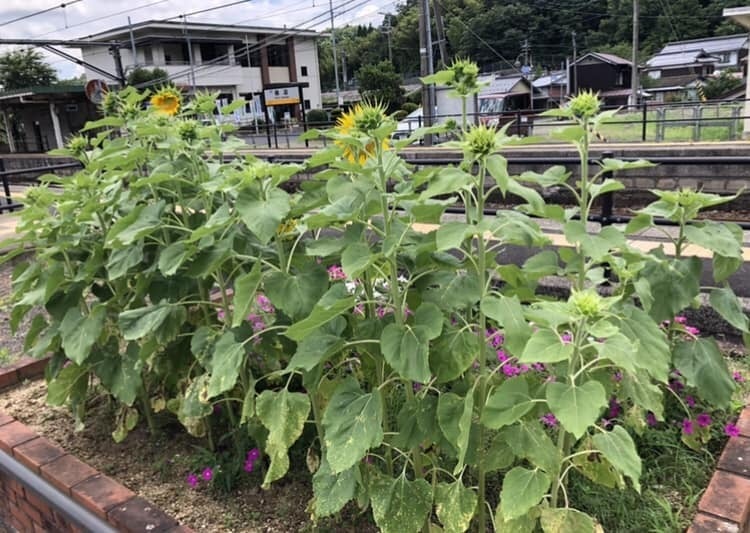代表の村上が幼少期に住んでいた際のご近所さんであるJR梅迫駅・名誉駅長である吉崎様にご協力いただきひまわりを植えさせていただきました!