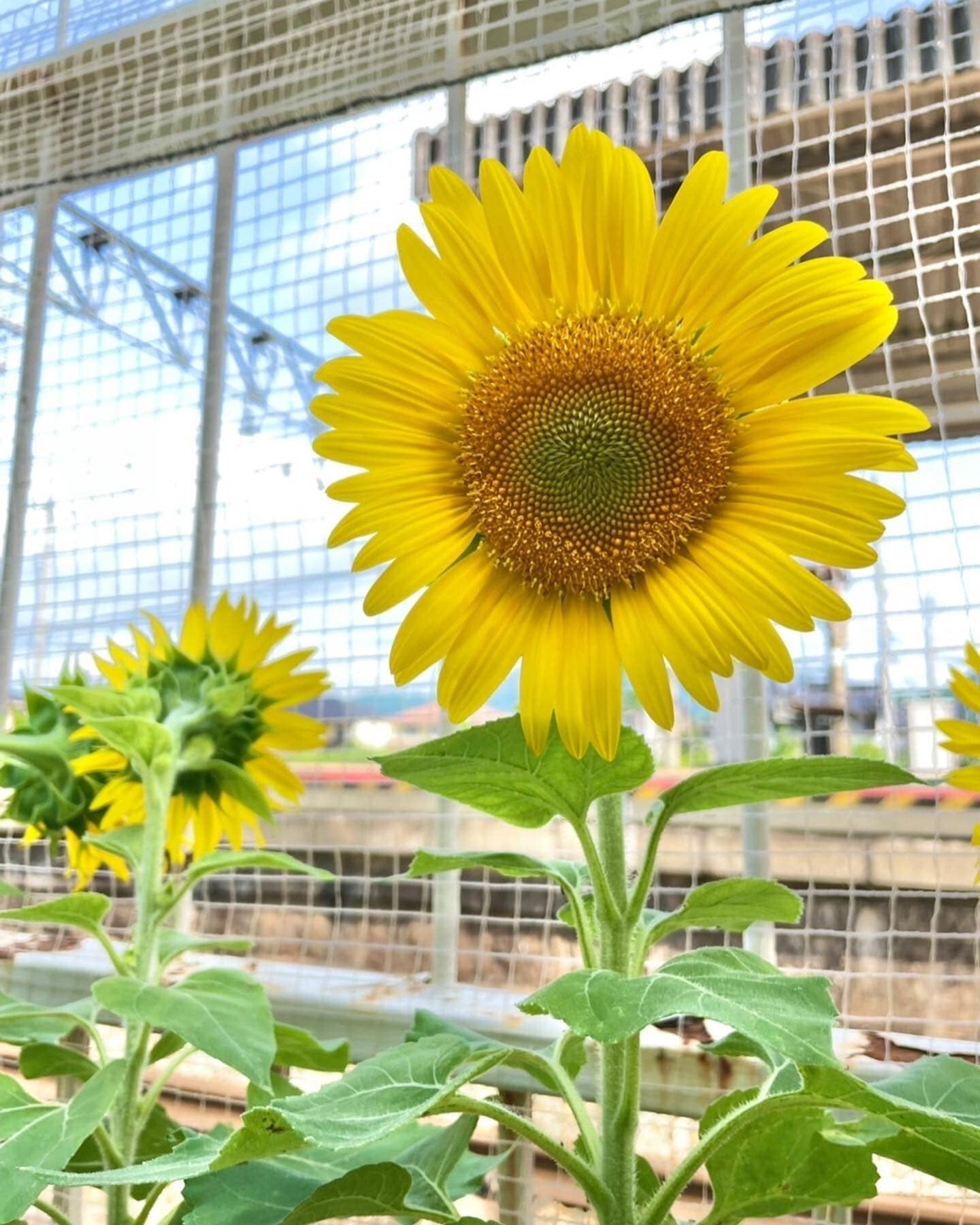 今年度は代表の村上が勤務する「京都府立工業高等学校」の最寄り駅である石原駅にもひまわりのプランターを置かせていただきました!
