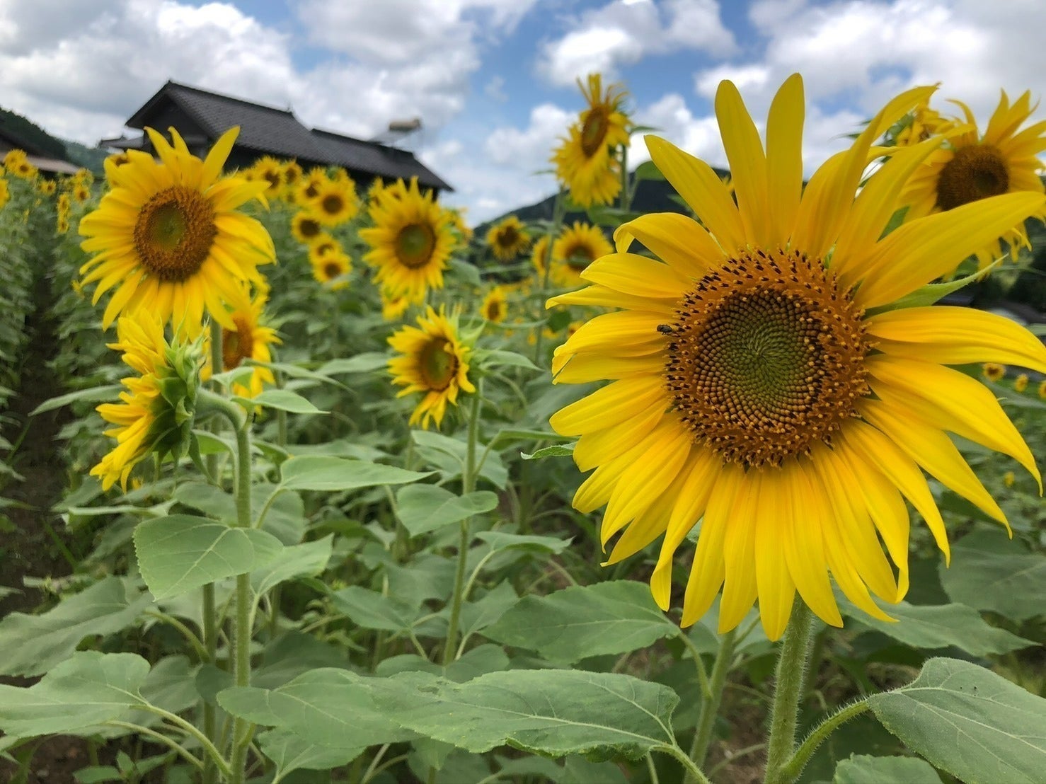 空いている家の田んぼにひまわりの種を植えました。