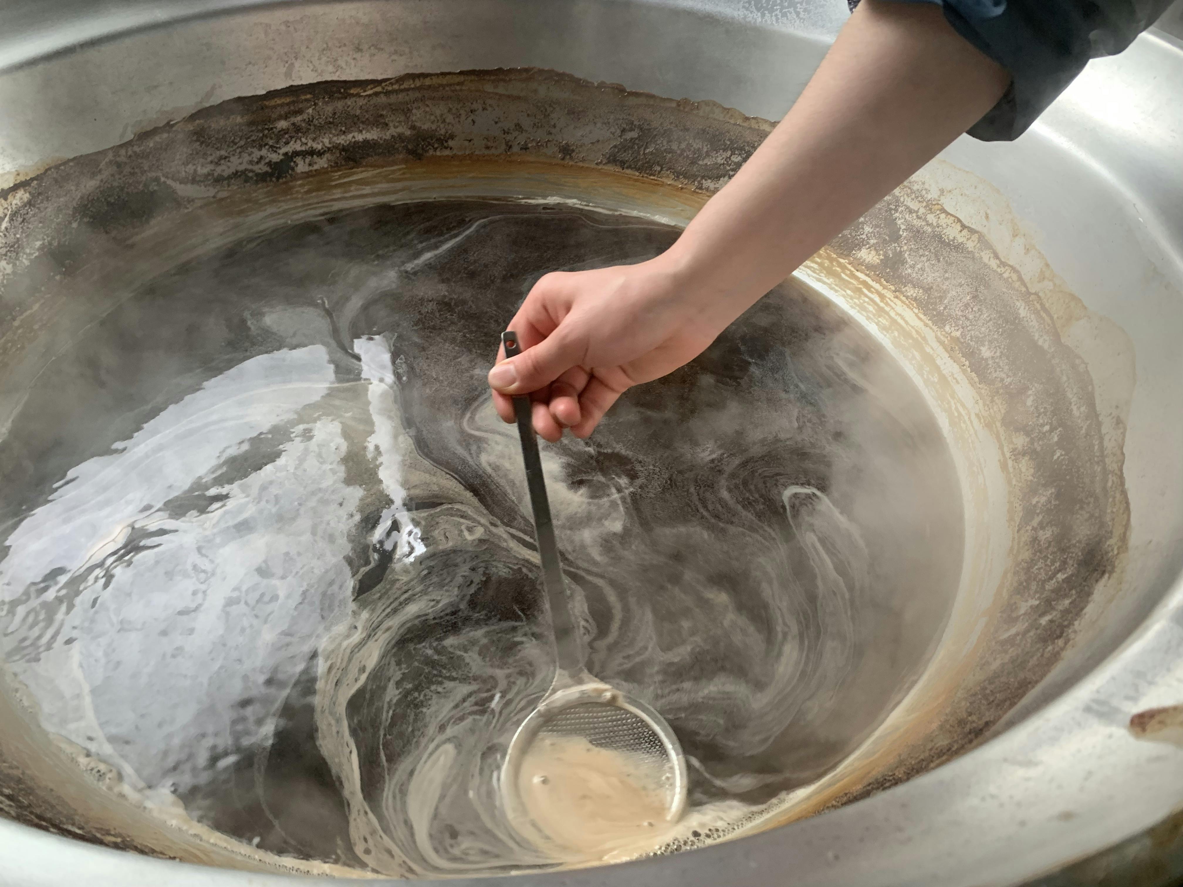 最初は、アクの出てくる甜菜の抽出液も