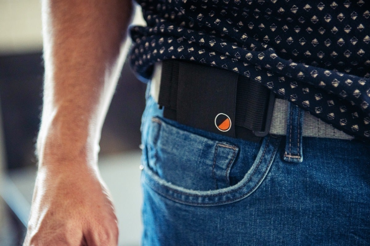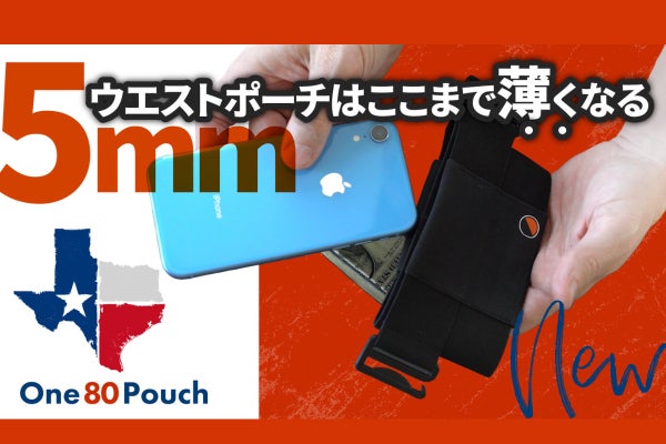 ベルト不要、ショルダー不要。ウエストラインにクリップで留めるだけでスマートフォンやお札、クレジットカードを収納出来る超薄型ウエストポーチ [ One80Pouch ] アメリカのクラファンサイトKickstarterで公開後、アメリカや日本を含めた世界各国で20,000人を超えるサポーターからご支援頂いている人気商品