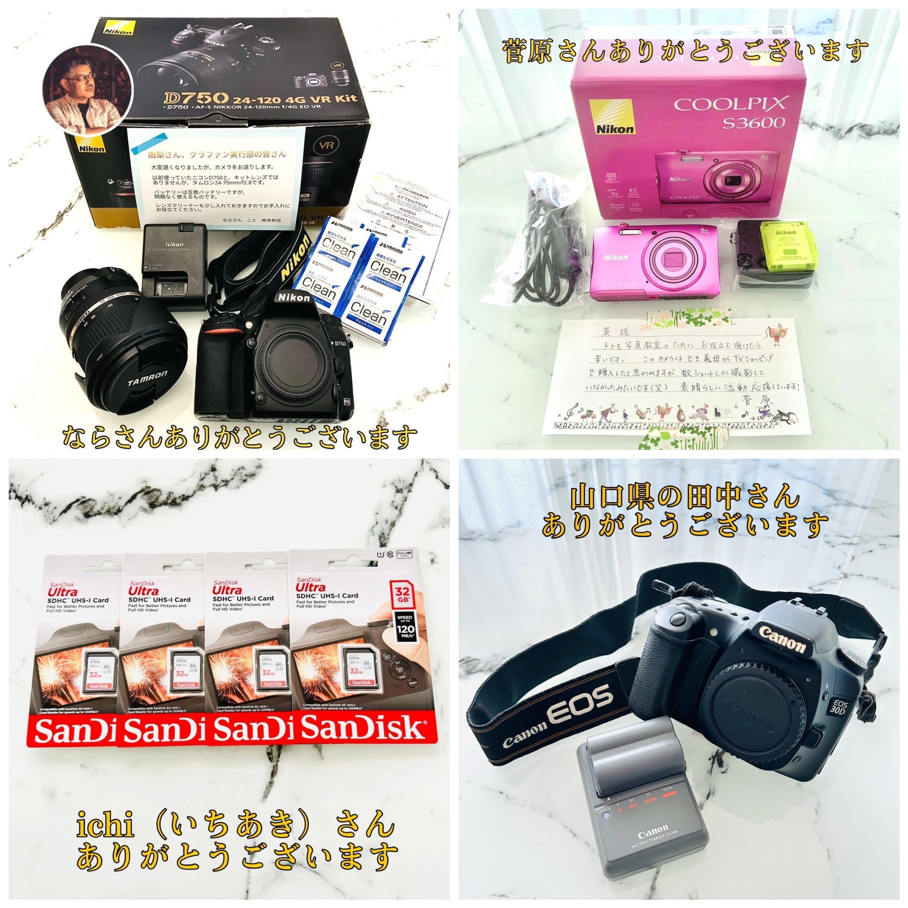 クラファン終了後も皆様からのカメラのご寄付、大変嬉しく思います。思い入れのあるカメラをお譲りいただきまして、本当にありがとうございます。子ども達がカメラに触れられる機会を増やし、未来の夢や希望のきっかけになる事を願い、大切に管理致します。ご寄付下さった皆様へ、改めまして心より感謝申し上げます。