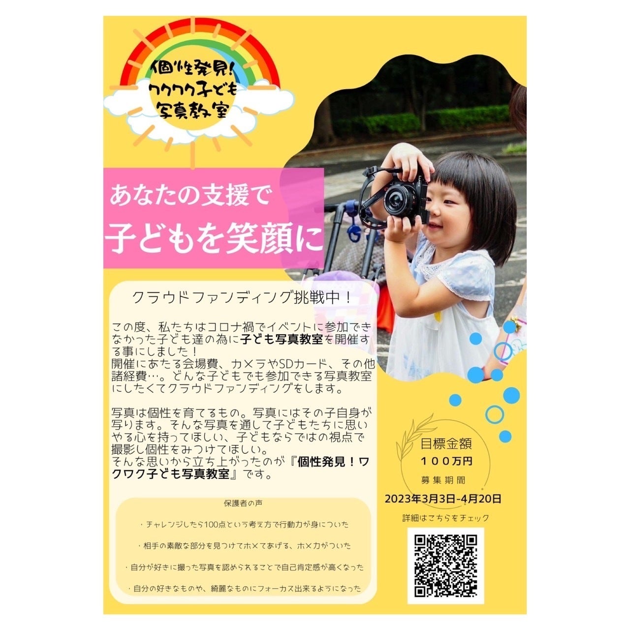 皆様いつもありがとうございます!ゆりです。個性発見!ワクワク子ども写真教室のクラファンも、あと14日となりました!カメラのご寄付皆様からたくさん頂き、大変嬉しく思います。思い入れのあるカメラをお譲りいただきまして、本当にありがとうございます。子ども達がカメラに触れられる機会を増やし、未来の夢や希望のきっかけになる事を願い、大切に管理致します。ご寄付下さった皆様へ、改めまして心より感謝申し上げます。送料はご負担となり恐縮ですが、ご自宅に使っていない、眠っているカメラがございましたら、お譲りいただけますと未来の子どもたちのエールになります!また、あと27%でプロジェクト達成ですのでここからも、チーム一丸となってご尽力致しますので、あたたかいご支援、拡散のご協力頂けますと幸いでございます。引き続きどうぞ宜しくお願い申し上げます。※画像掲載許可いただいております。