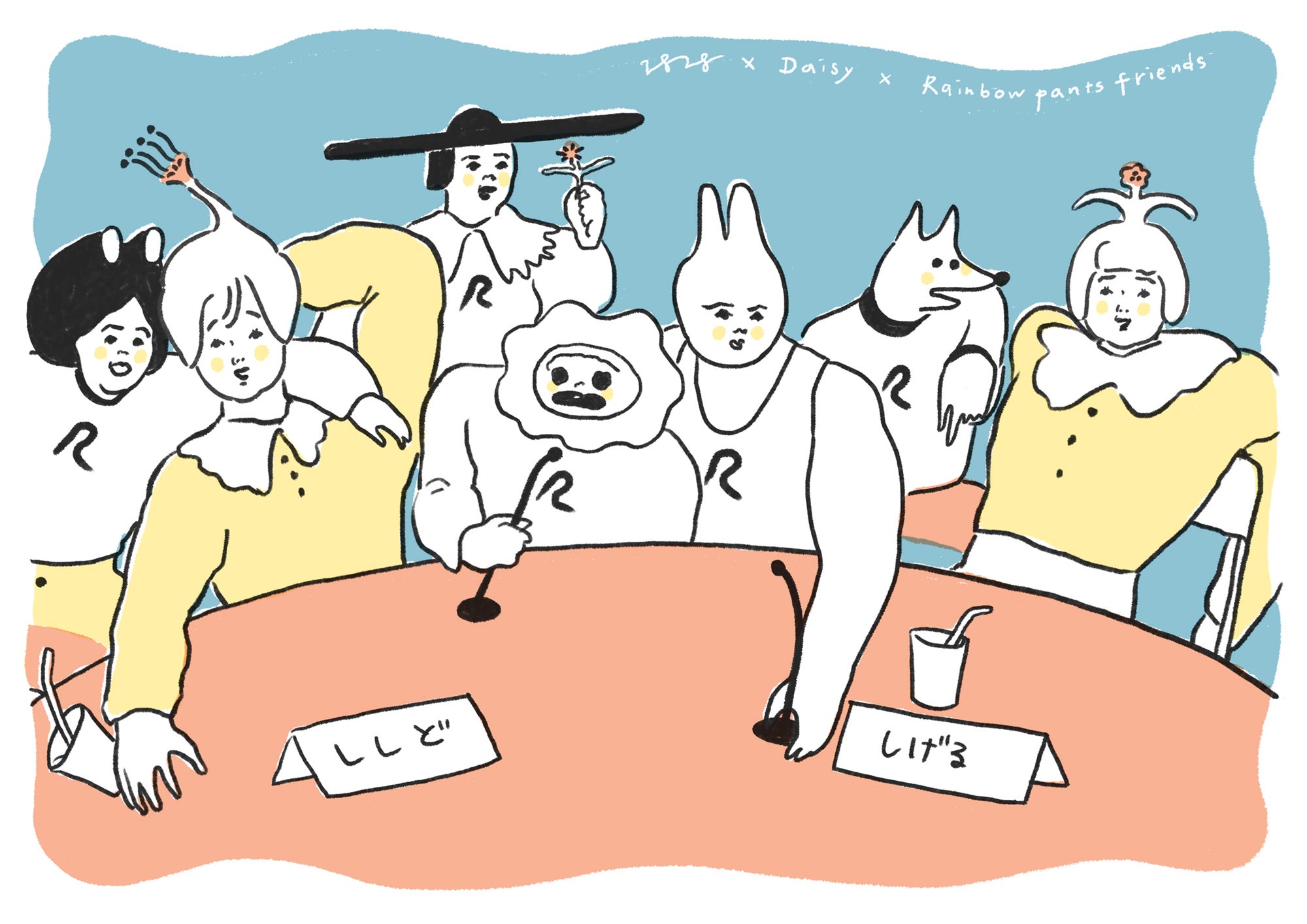 ししど:その新作「レインボーパンツ」をデイジー氏たちに履いてもらって「レインボーパンツフレンズ」というユニットを作っちゃいました。