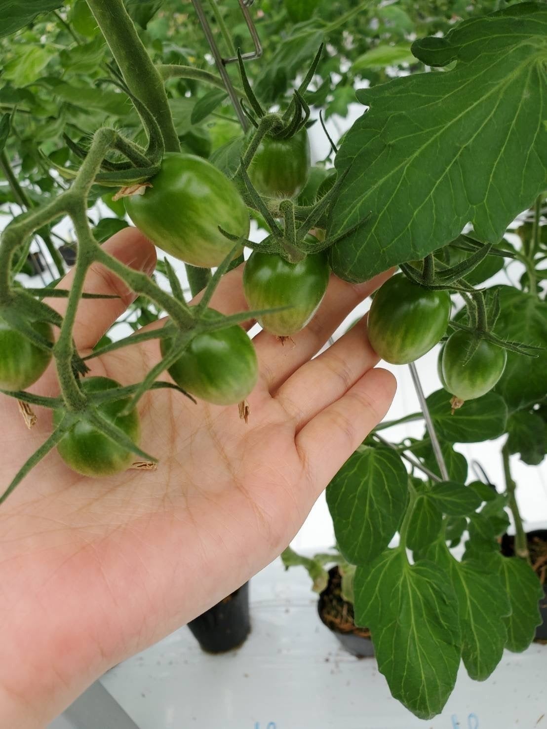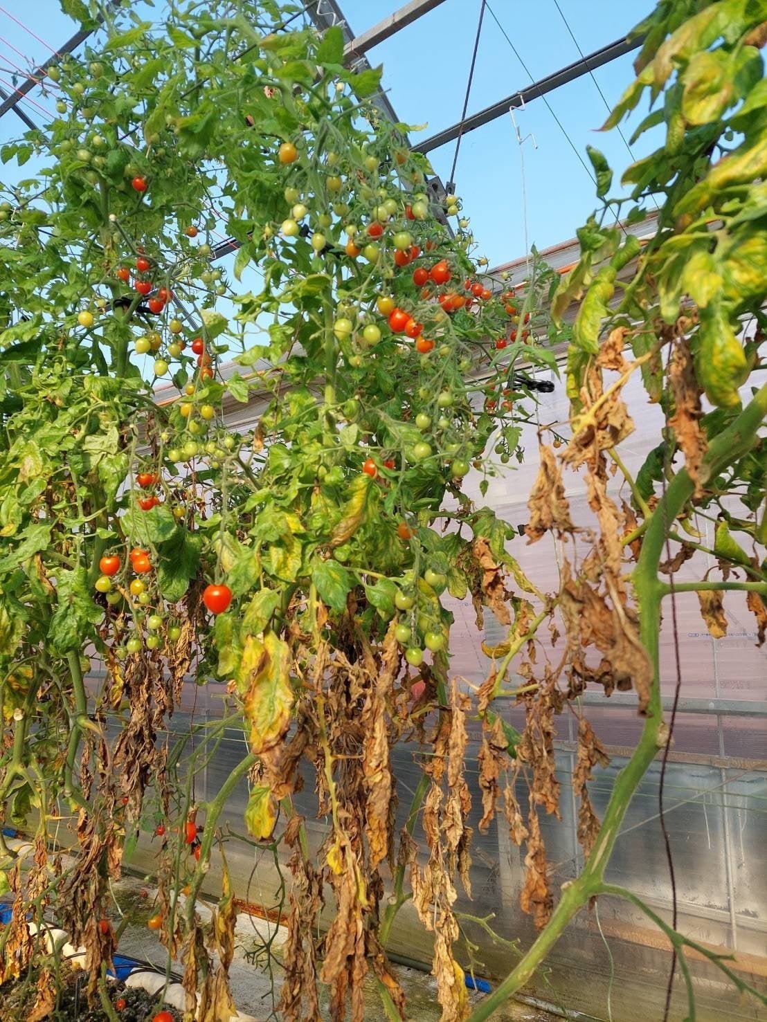 この品種の特性上、どうしても苗から購入しなければならないので、すでに農薬がかかった状態でくるので無農薬栽培ではありません。ですが、農園萩乃店に届いてからは化学農薬は一切使用しておりません。通常、トマトは収量をあげるためホルモン剤を使用していることがほとんどですが、それも使用しておりません。蜂をとばしての受粉もしておりません。自然に実をつけてほしいので、何も手を加えておりません。(自然受粉のほうが栄養価が高いことを後で知りました)