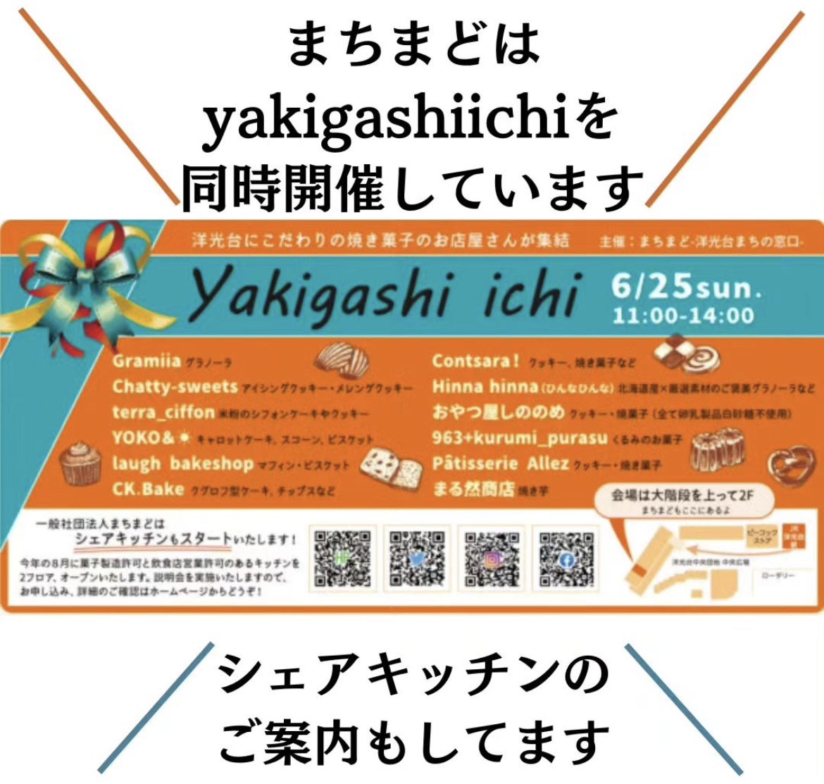 6月25日(日)はまちまど主催のyakigashiichiを開催します。