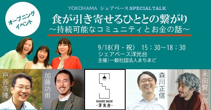 「持続可能なコミュニティとお金の話」というテーマで、登壇者の皆様にお話を伺いながら、「食が引き寄せるひととの繋がり」について、登壇者・参加者の皆様と対話できる時間にします。